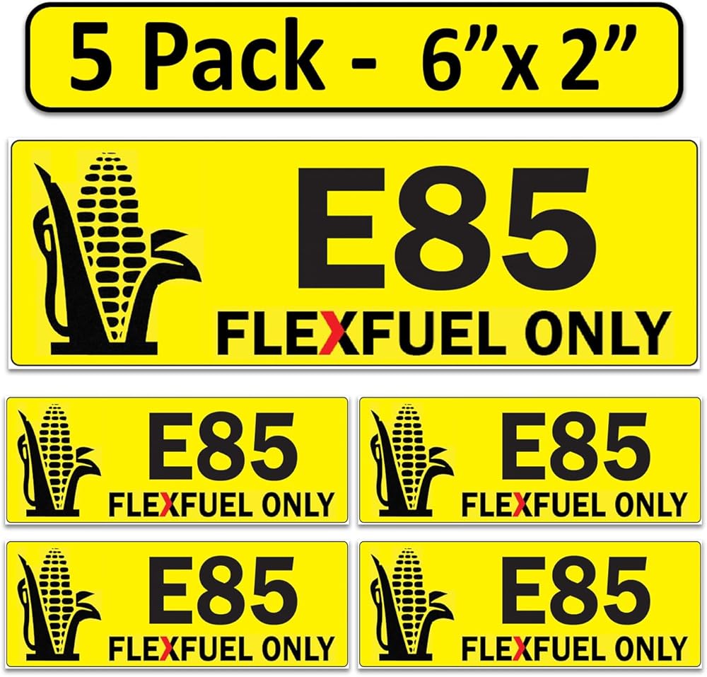 5 عبوات من ملصقات الوقود المرنة للإيثانول E85 - ملصقات تعريف الوقود مقاس 6 × 2 بوصة - فينيل مقاوم للطقس لخزانات الوقود والجرارات والحفارات ومعدات البناء