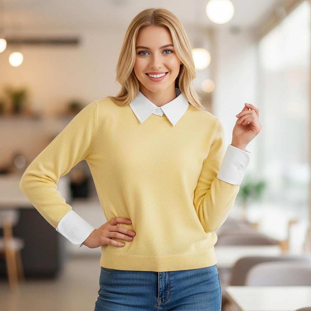 Detachable Design: Both the detachable collar and cuffs are detachable, allowing you to freely mix and match according to different occasions and style needs. Quickly change your look without changing the entire top, achieving multiple uses with one garment – efficient and economical