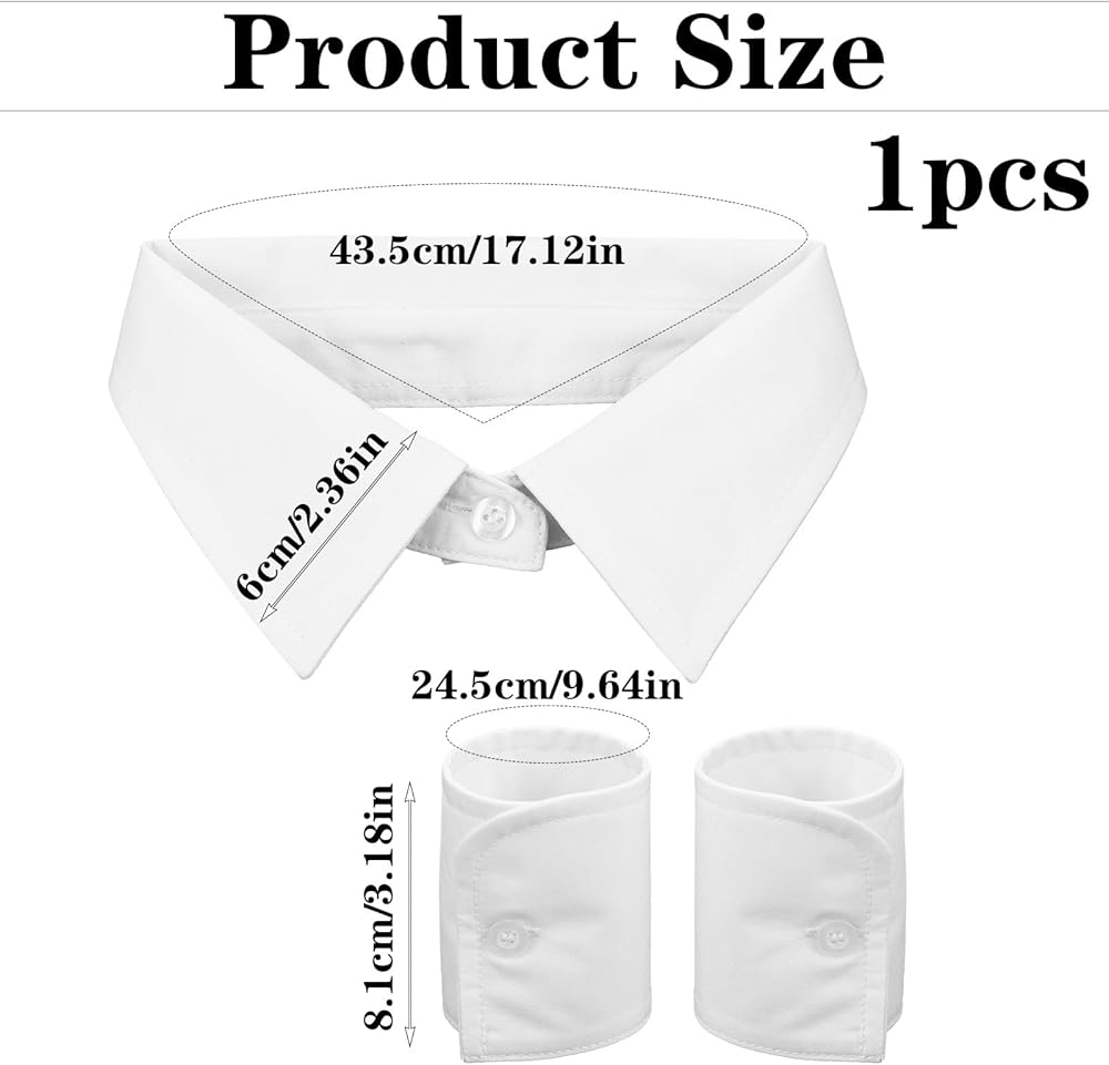 Size Fits Most Body Types: The collar and cuffs of this detachable collar are approximately 9.6 inches/24.5 cm long and 3.18 inches/8.1 cm wide; the collar length is approximately 17.13 inches/43.5 cm. It fits most women's body types, ensuring a secure and comfortable fit