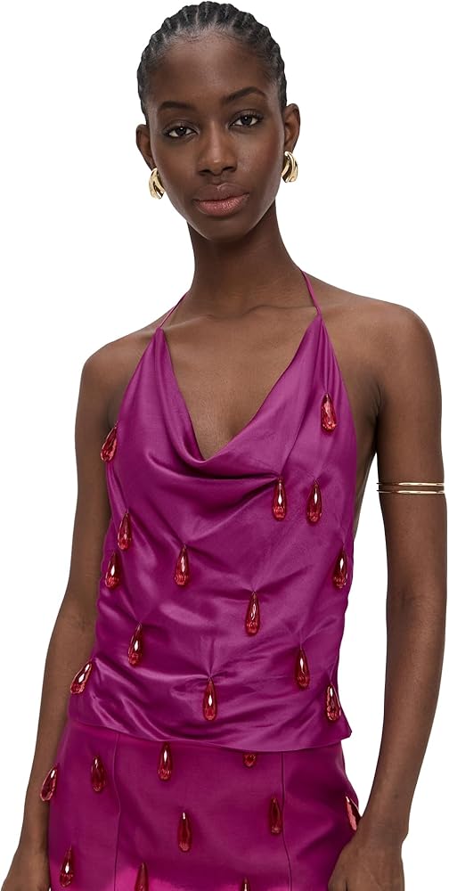 - ظهر مفتوح مع زر للإغلاق، ولمسات من الخرز على شكل دمعة