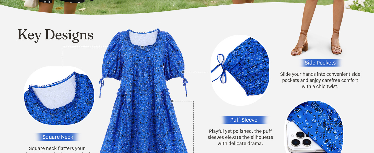 المناسبات المناسبة: مثالي للنزهات غير الرسمية، أو عطلات نهاية الأسبوع، أو مواعيد الغداء، أو أغطية الشاطئ، أو حفلات الحديقة، أو كفستان عطلة ممتع. رائعة أيضًا لمهرجانات الربيع أو رحلات التسوق أو التنزه في شوارع المدينة بأناقة.
