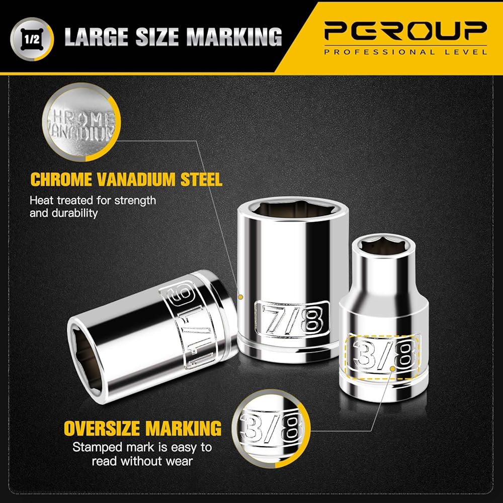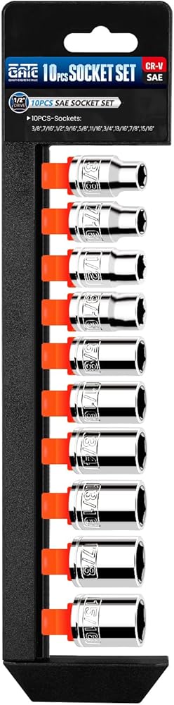 • الحجم يشمل: 1/2 بوصة مجموعة مقابس SAE: بما في ذلك 3/8 بوصة، 7/16 بوصة، 1/2 بوصة، 9/16 بوصة، 5/8 بوصة، 11/16 بوصة، 3/4 بوصة، 13/16 بوصة، 7/8 بوصة، 15/16 بوصة. كما أنها تأتي مع رف بلاستيكي لوضع المقابس بطريقة منظمة وغير مزدحمة. يوجد دعامة تثبيت للمقبس في الحامل البلاستيكي لتأمين المقبس بشكل آمن