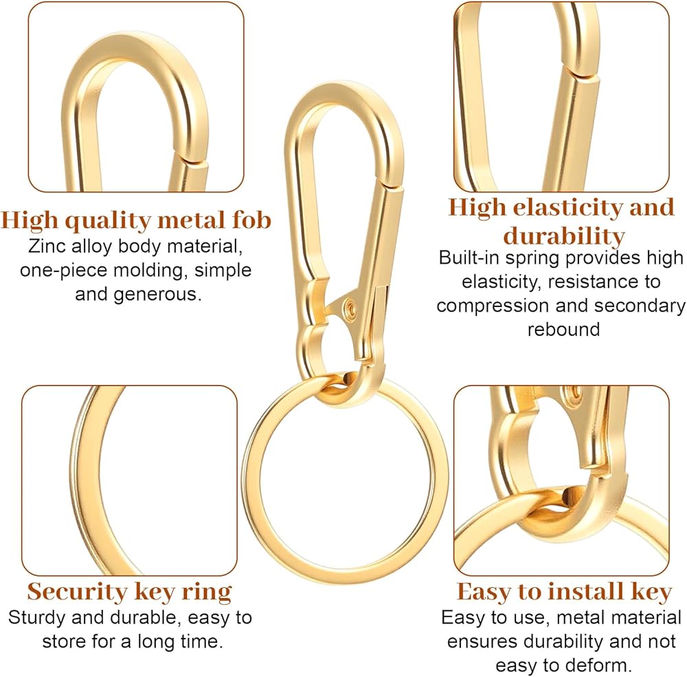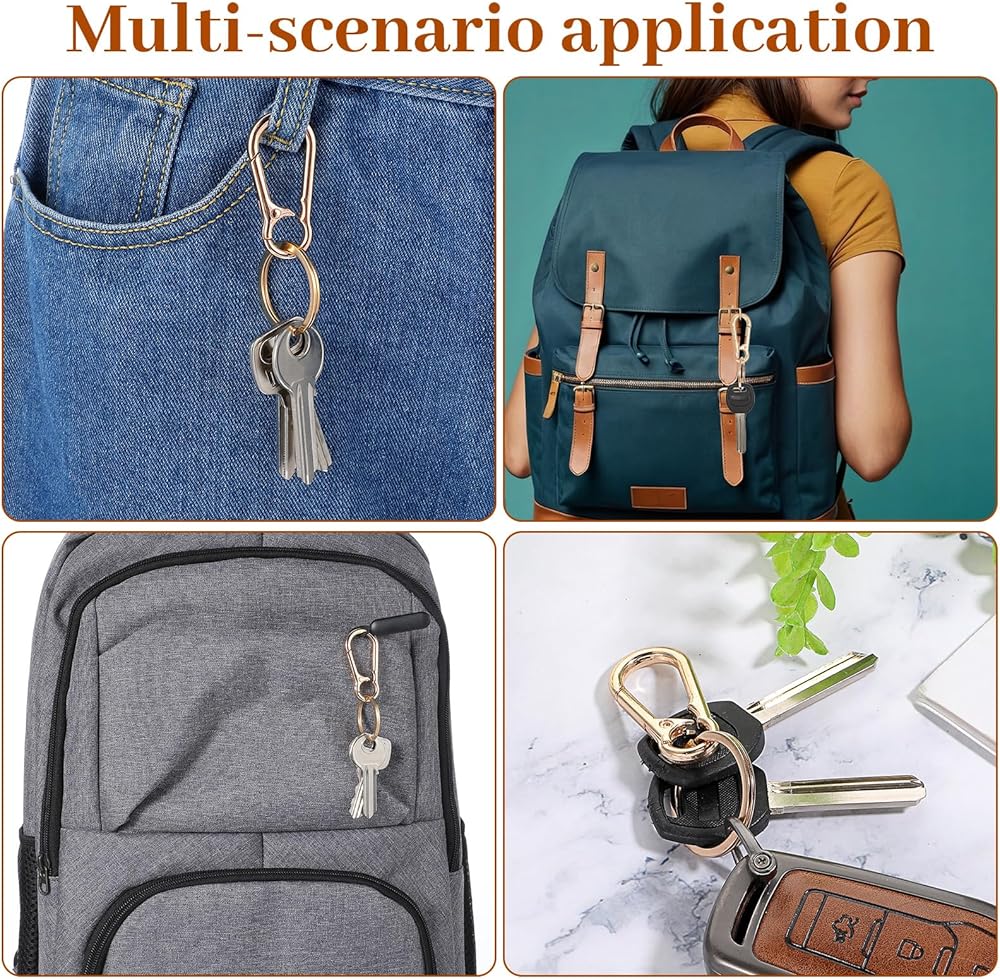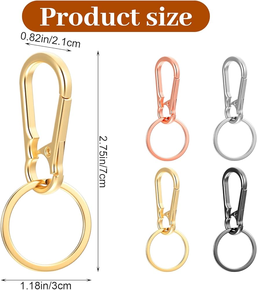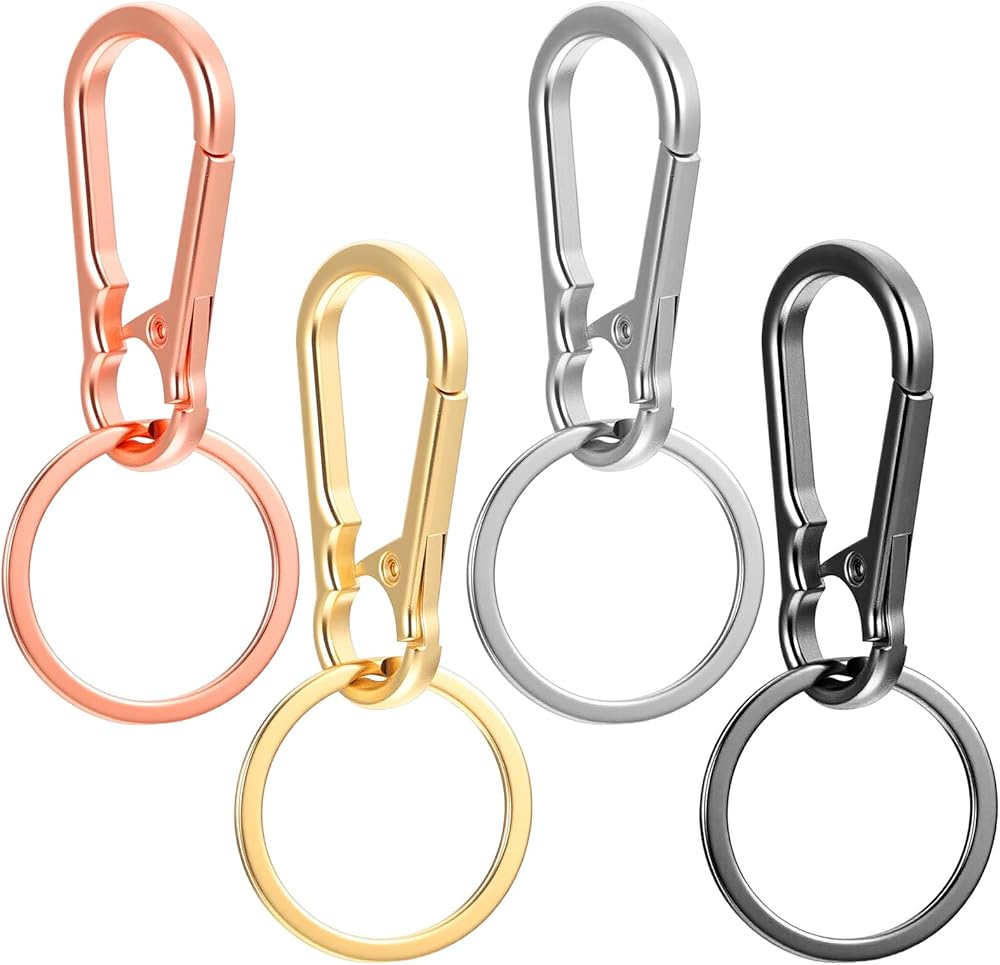 • Metal Keychains Keyring Key Chain Ring Clip Holder Organizer - This set includes four keychain clips in rose gold, silver, gunmetal, and gold, made from zinc alloy, designed as a key ring holder or keychain holder for organizing keys.