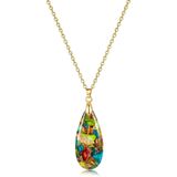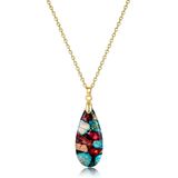 14K Gold Plated Healing Stone Teardrop Pendant Necklace for Women, Waterproof Stainless Steel Chain, Colorful Natural Stone Look, Boho Spiritual Jewelry Gift