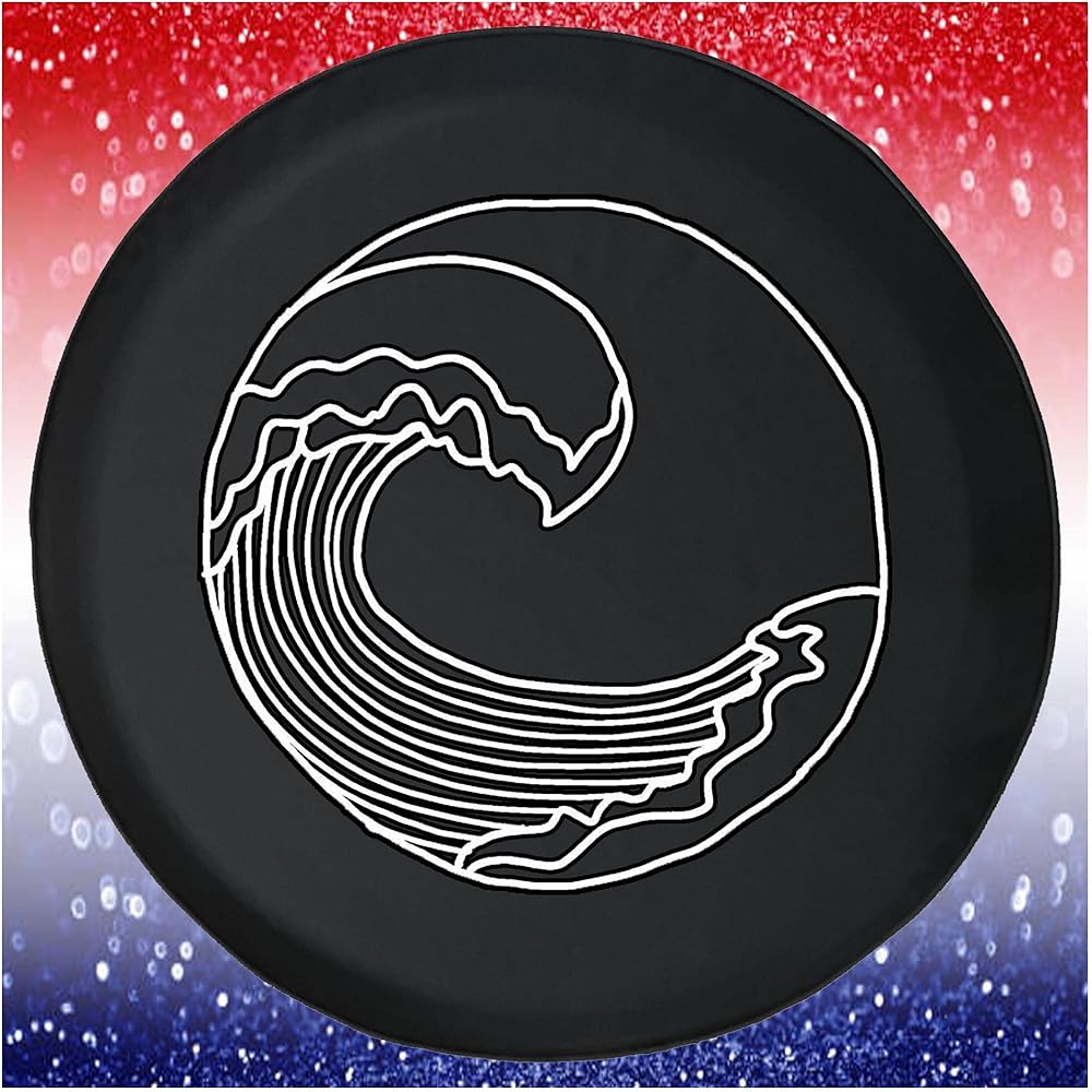 This Waves Beach Black 35 Inch Black Tire Cover All Tire Covers are available in sizes 27-35 inches. This will cover all campers, rv, 4x4, and SUV's. Remember to check and see if you need the hole for the back up camera - common on 2018 and newer vehicles. Images are printed in the USA using UV resistant ink to provide the best quality.