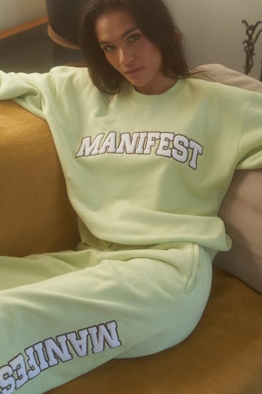 • Varsity-Inspired Crewneck: Classic crewneck fit in an ultra-cozy fleece designed as a wearable reminder that alignment comes before manifestation.