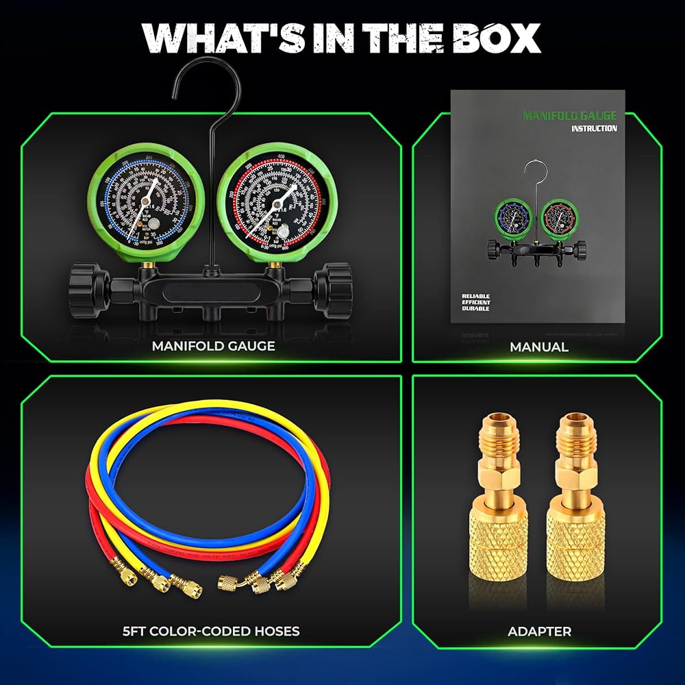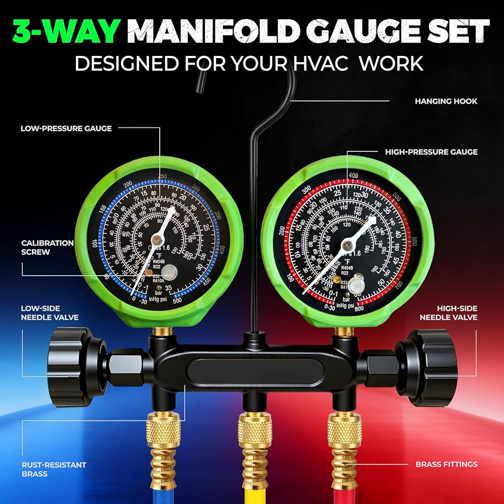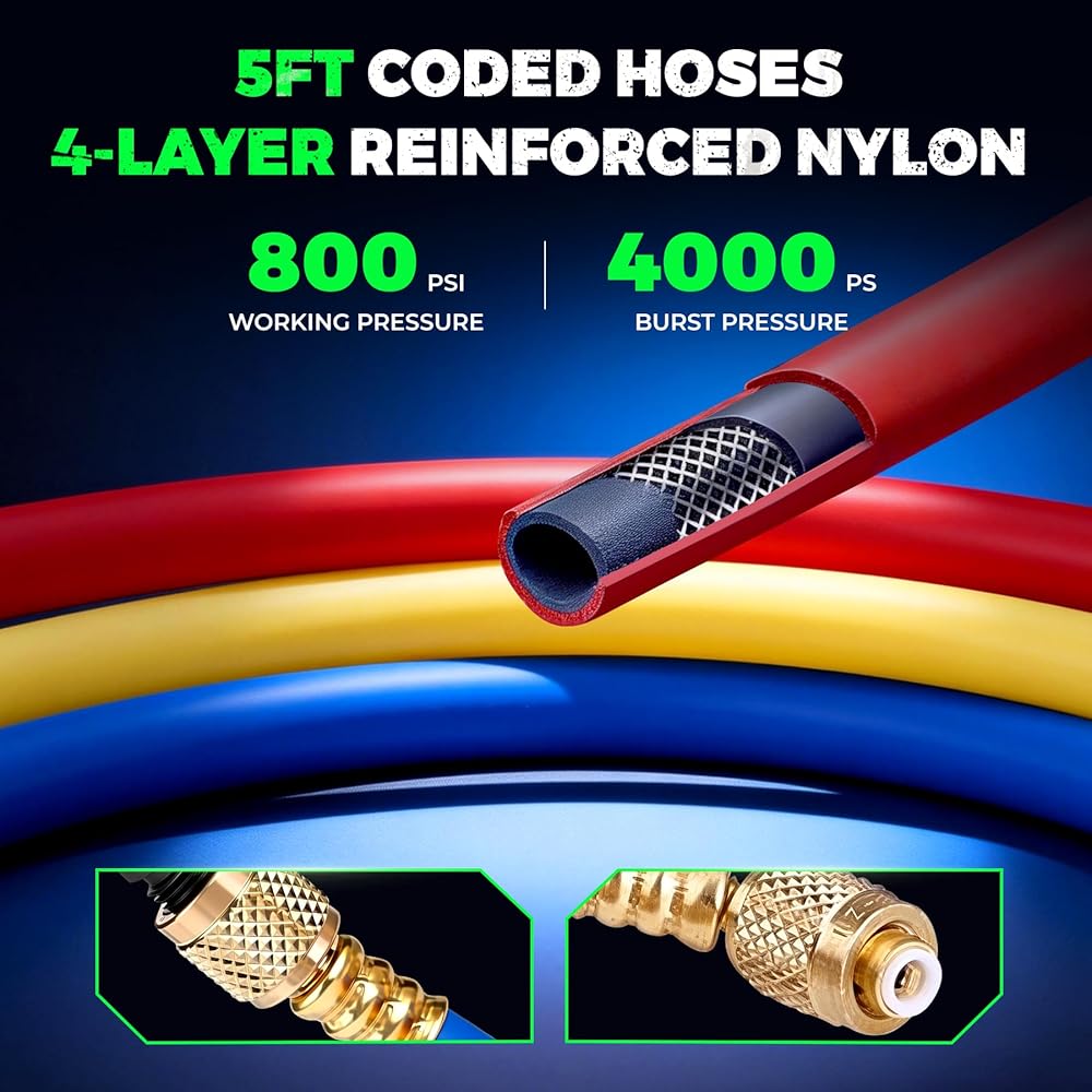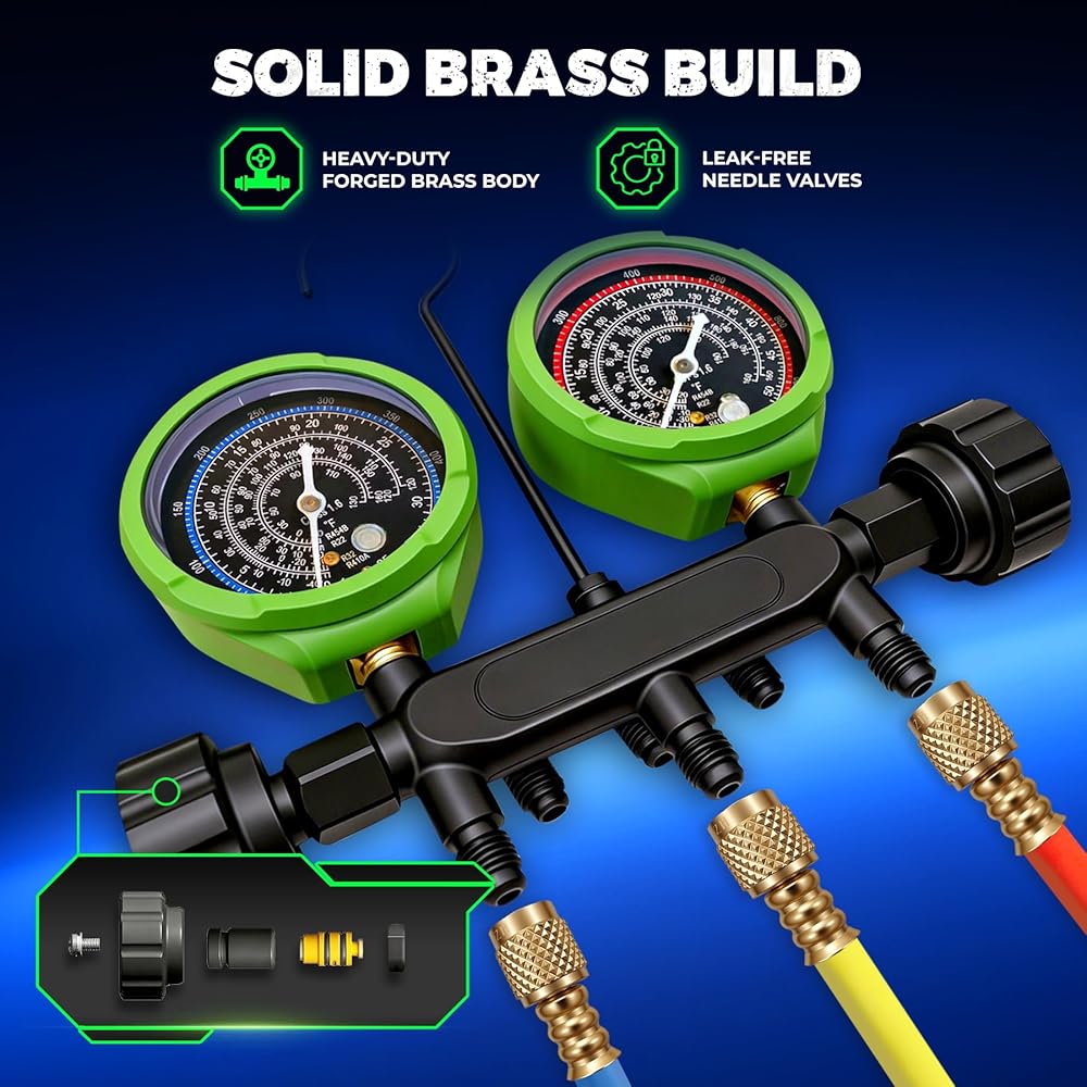 تطبيق متعدد الاستخدامات: إن تعدد استخدامات مجموعة المقاييس المتعددة يجعلها لا غنى عنها عبر مجموعة من التطبيقات، بدءًا من أنظمة التدفئة والتهوية وتكييف الهواء السكنية وحتى التبريد التجاري ومكيفات الهواء في السيارات (manometros). تم تصميم مقاييس غاز التبريد a2l للتعامل مع احتياجات الخدمة المتنوعة، وتوفير قراءات موثوقة للضغط وإدارة سائل التبريد. سواء كنت تعمل مع مقاييس r454b على وحدة منزلية أو تقوم بالتشخيص على السيارة، فقد تم تصميم هذه الأداة المتعددة لتحقيق أداء قوي، وهي مجموعة قياس متكاملة حقيقية.