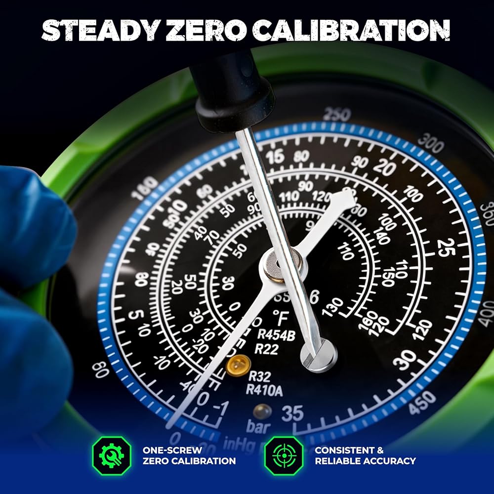 الدقة والثبات: توفر مقاييس r454b قراءات عالية الدقة للضغط ودرجة الحرارة من الفئة 1.6 لـ R32 وR454B وR410A وR22. يلغي القرص التناظري ثنائي المقياس الحاجة إلى مخططات PT، ويقيس الضغط بدقة من -30 إلى 500 رطل لكل بوصة مربعة و-30 إلى 800 رطل لكل بوصة مربعة بمقاييس درجة فهرنهايت المقابلة. تتميز مجموعة المقاييس المتعددة هذه بمسمار معايرة صفري ثابت لضمان الموثوقية على المدى الطويل. تضمن مقاييس سائل التبريد a2l تشخيصًا سريعًا وخاليًا من الأخطاء لأي نظام.