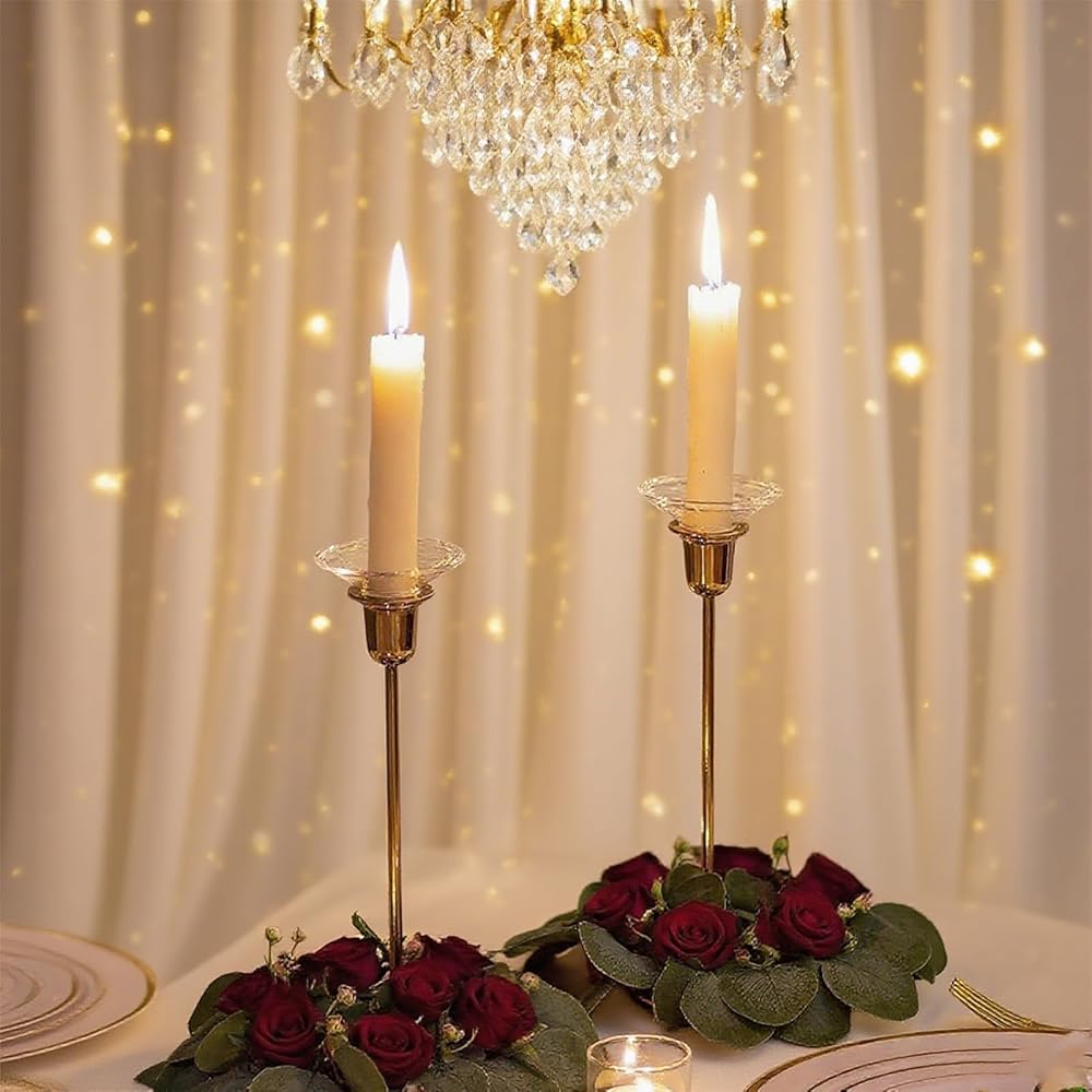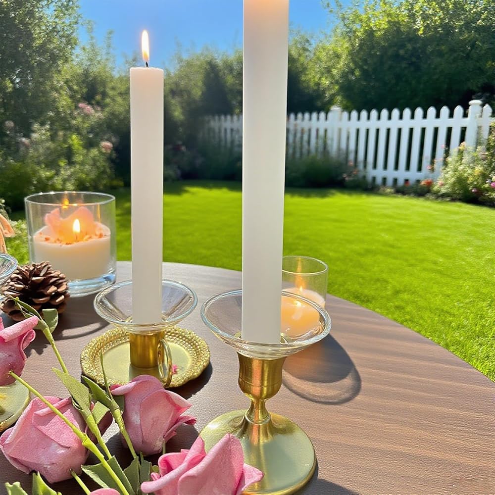 مظهر أنيق وأنيق: حاملات عصا الشموع الخاصة بنا مصنوعة بشكل جيد من الزجاج، شفافة ورقيقة. التصميم السلس، الحواف الناعمة والمنحنية، يمتزج المظهر الجميل بشكل مثالي مع جميع أنماط حاملات الشموع المدببة ويضيف الأناقة إلى منزلك