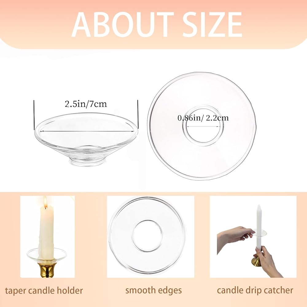 شموع زجاجية صغيرة: مستدقة: بقطر 2.5 بوصة، فتحة مركزية 0.86 بوصة، تم تصميم صواني تنقيط الشموع الزجاجية الخاصة بنا لتناسب بشكل أنيق أكثر من شموع تنقيط مقاس 7/8 بوصة. تناسب الشموع القياسية، والتناقص التدريجي، وحاملات الشموع المستدقة، والشمعدانات وثريا الشموع.