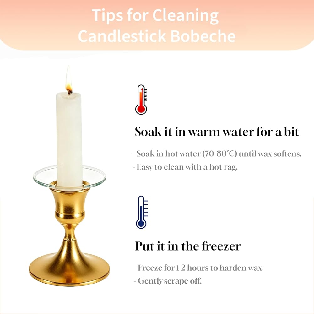 نصائح لتنظيف الشمعدان بوبيش: إذا كان ماسك الشمع المتساقط يتراكم عليه شمع الشمع، فيمكنك وضعه في الفريزر أو نقعه في ماء دافئ قليلاً، وسوف ينفجر الشمع على الفور. ثم اغسليها بالماء الدافئ والصابون، وجففيها، وستحصلين على بوبيش جديد يمكن إعادة استخدامه.