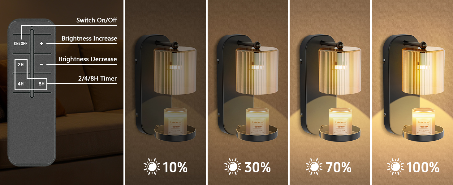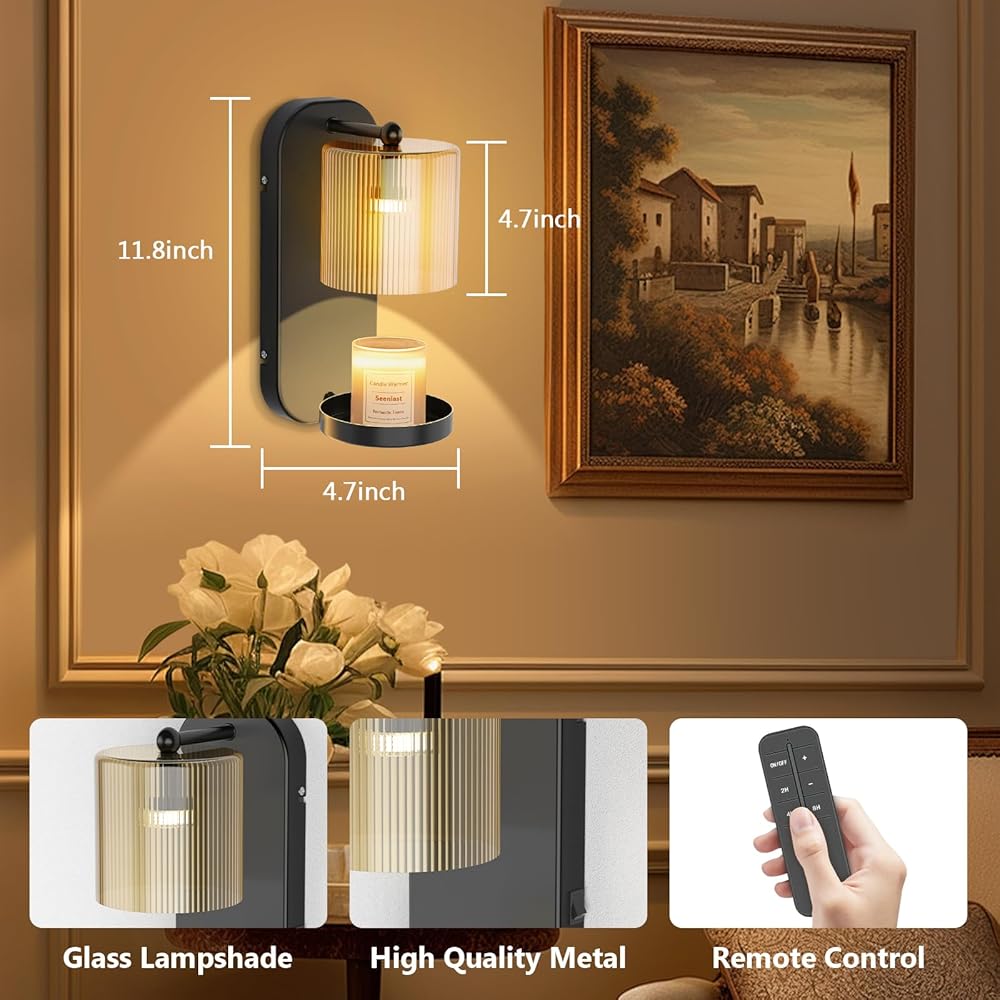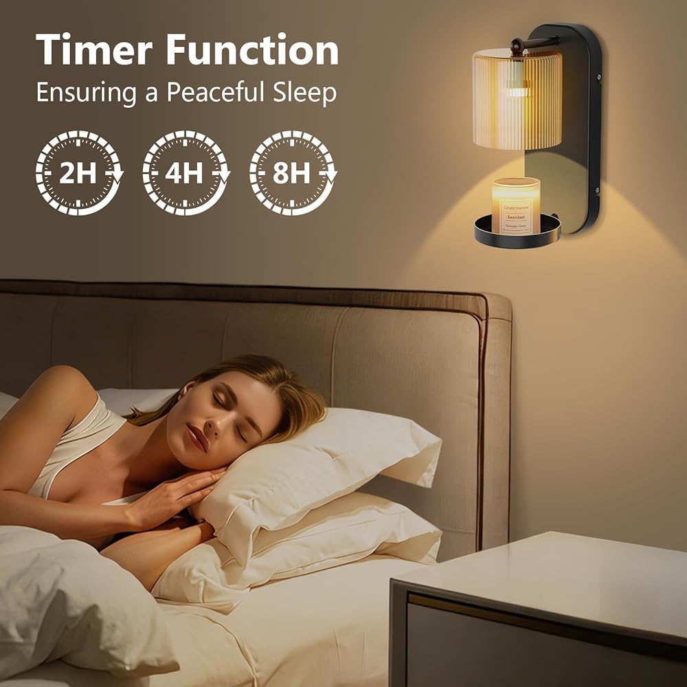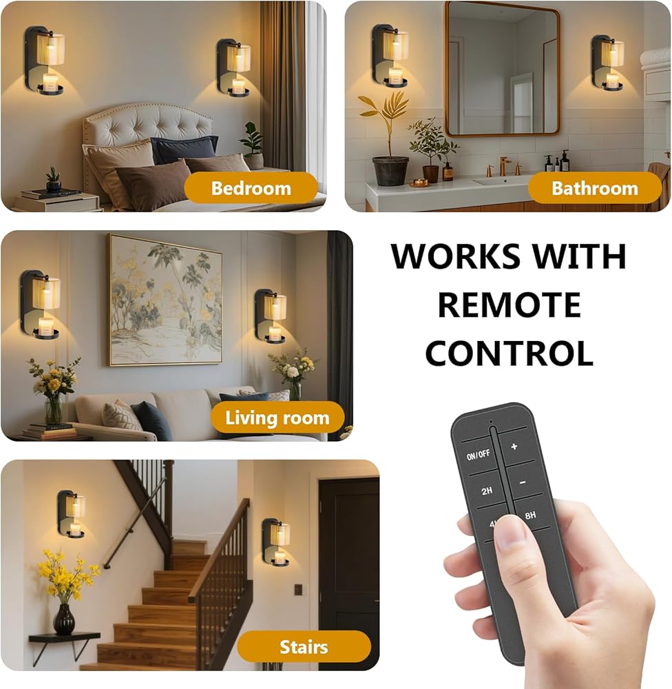 تشغيل مريح للتحكم عن بعد: يمكنك تشغيل جهاز التدفئة أو إيقاف تشغيله بسهولة، وضبط مستويات السطوع، وضبط المؤقت - كل ذلك وأنت مرتاح على سريرك أو أريكتك. لا حاجة للوصول إلى مفتاح الحائط، مما يجعل الاستخدام اليومي بسيطًا وبدون مجهود. (ملاحظة: هذا شمعدان جداري بأسلاك صلبة، وليس يعمل بالبطارية)