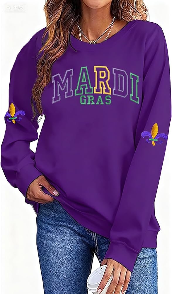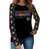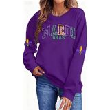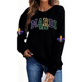 Mardi Gras Sweatshirt for Women New Orleans Party Mask Graphic Shirts Fat Tuesday Holiday Long Sleeve Pullover Tops
