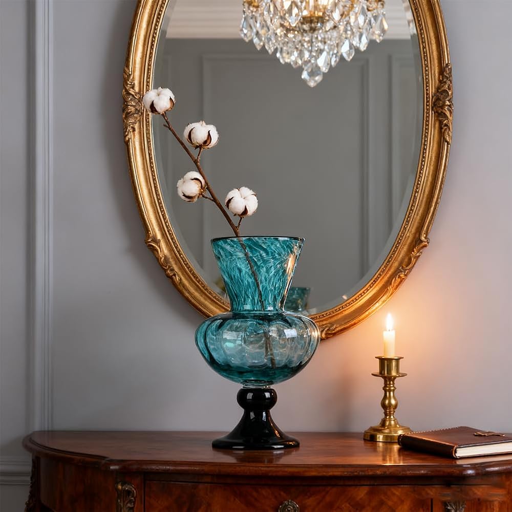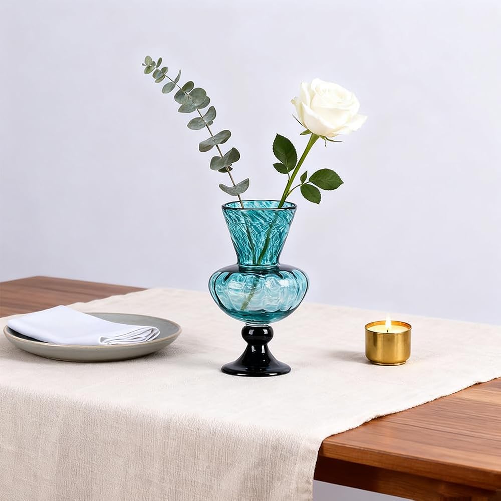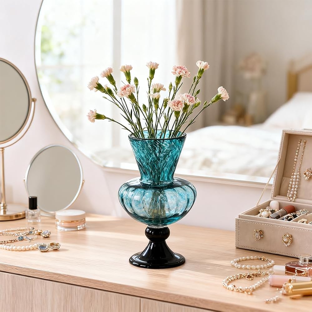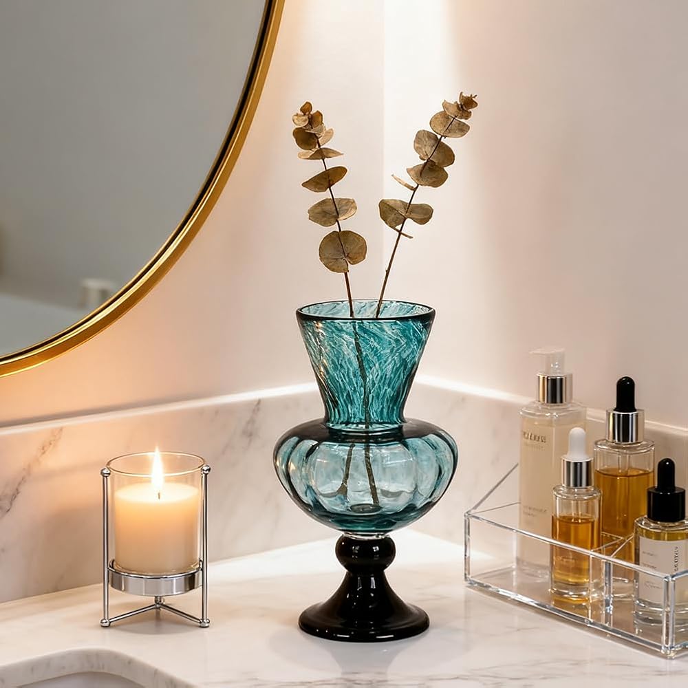 Whether you're curating a home altar catholic, styling your bookshelf, or refreshing your bathroom countertop, this piece complements teal vases for centerpieces, mint green vases home decor, or sea glass vase themes. Its vibrant finish also pairs beautifully with blue glass vases or green glass vases for flowers for layered home styling.