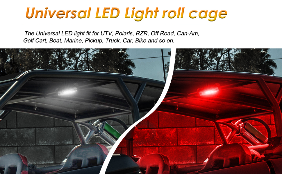 تطبيق واسع - يمكن تركيب مصباح القبة LED العالمي المزود بمفتاح تقريبًا في أي مكان تريده. يناسب جميع القضبان المربعة والمستديرة التي يصل قطرها إلى 4 بوصات، ويمكن امتصاصه على أي سطح معدني أملس. يمكن استخدامها على نطاق واسع لمعظم المركبات والأجهزة، مثل UTV، SXS، عربة الجولف، الشاحنة، السيارة، RV، SUV، ATV، القارب، إلخ.