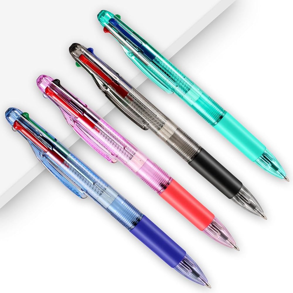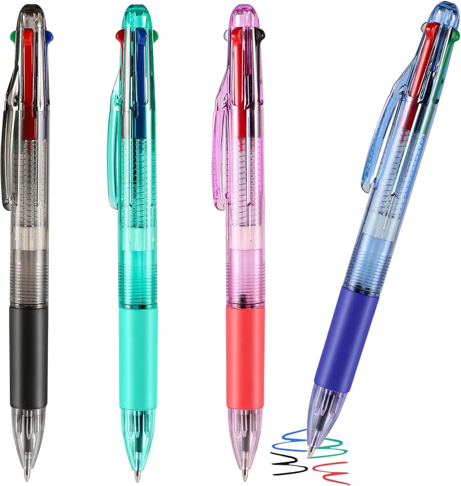 4 قطع من القلم الأساسي متعدد الألوان في قلم حبر جاف واحد قابل للسحب بأربعة ألوان 0.7 مم، أقلام مكوكية ناعمة للبالغين والطلاب والممرضات والمعلمين وحفلات الهدايا وحقائب الهدايا وجوائز الكرنفال (4)