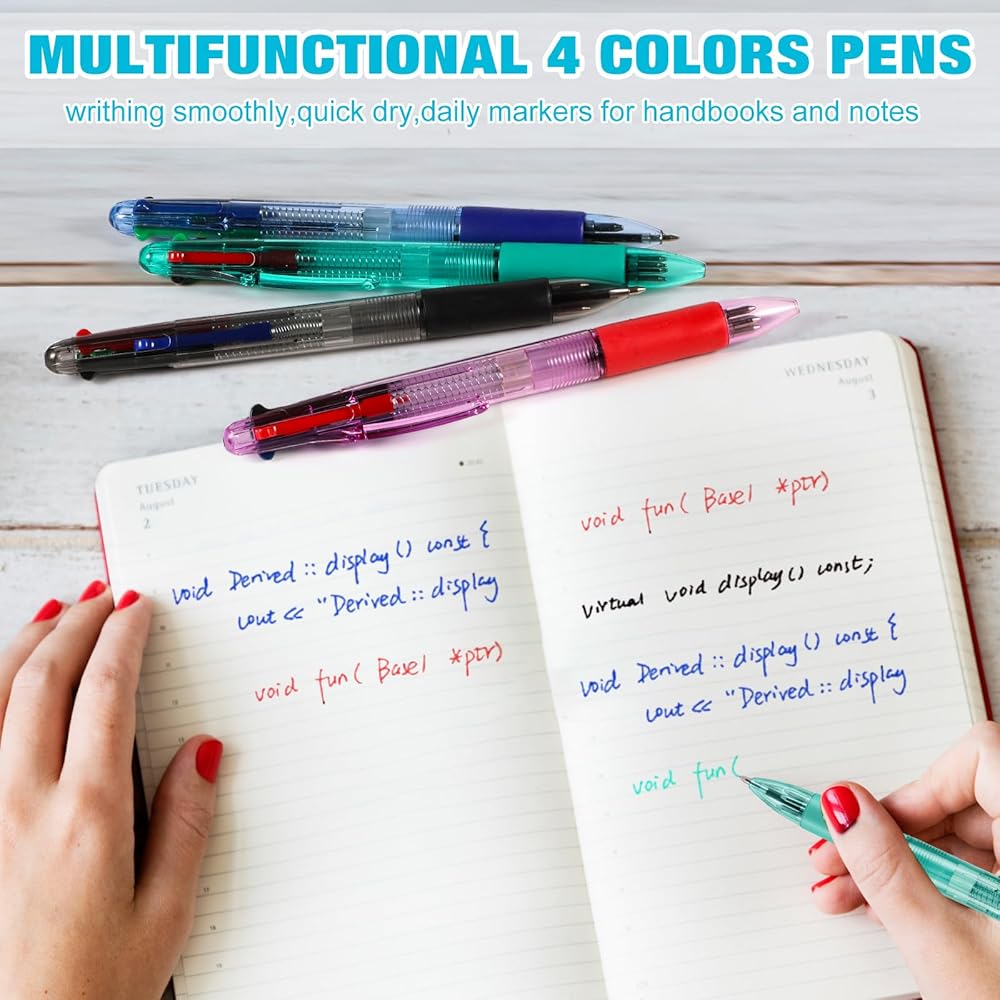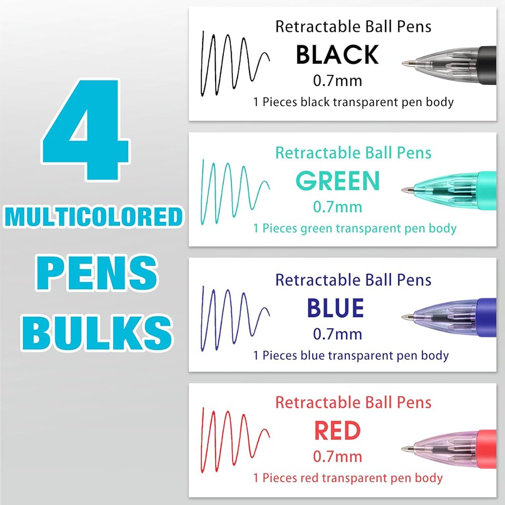4 colors shuttle Pens:the 4-in-1 multicolor pens is with 4 most common colors:black,red,blue and green,and the 0.7mm fine point always delivers smooth glides, giving you a satisfied writing experience