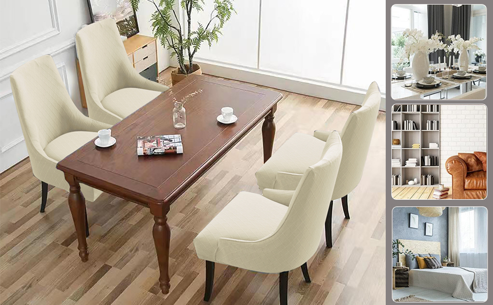 الاستخدام على نطاق واسع: غطاء الكرسي قابل لإعادة الاستخدام وقابل للإزالة، وهو مناسب جدًا للعائلات التي لديها أطفال وحيوانات أليفة. مناسبة لمعظم الكراسي ذات الأجنحة والكراسي المميزة. يمكن استخدامه ككرسي مسند ظهر في الفنادق والمطابخ وغرف الطعام وحفلات الزفاف والولائم والعشاء والعائلات والمكاتب والمقاهي والمطاعم، بالإضافة إلى هدية للعائلة أو الأصدقاء.