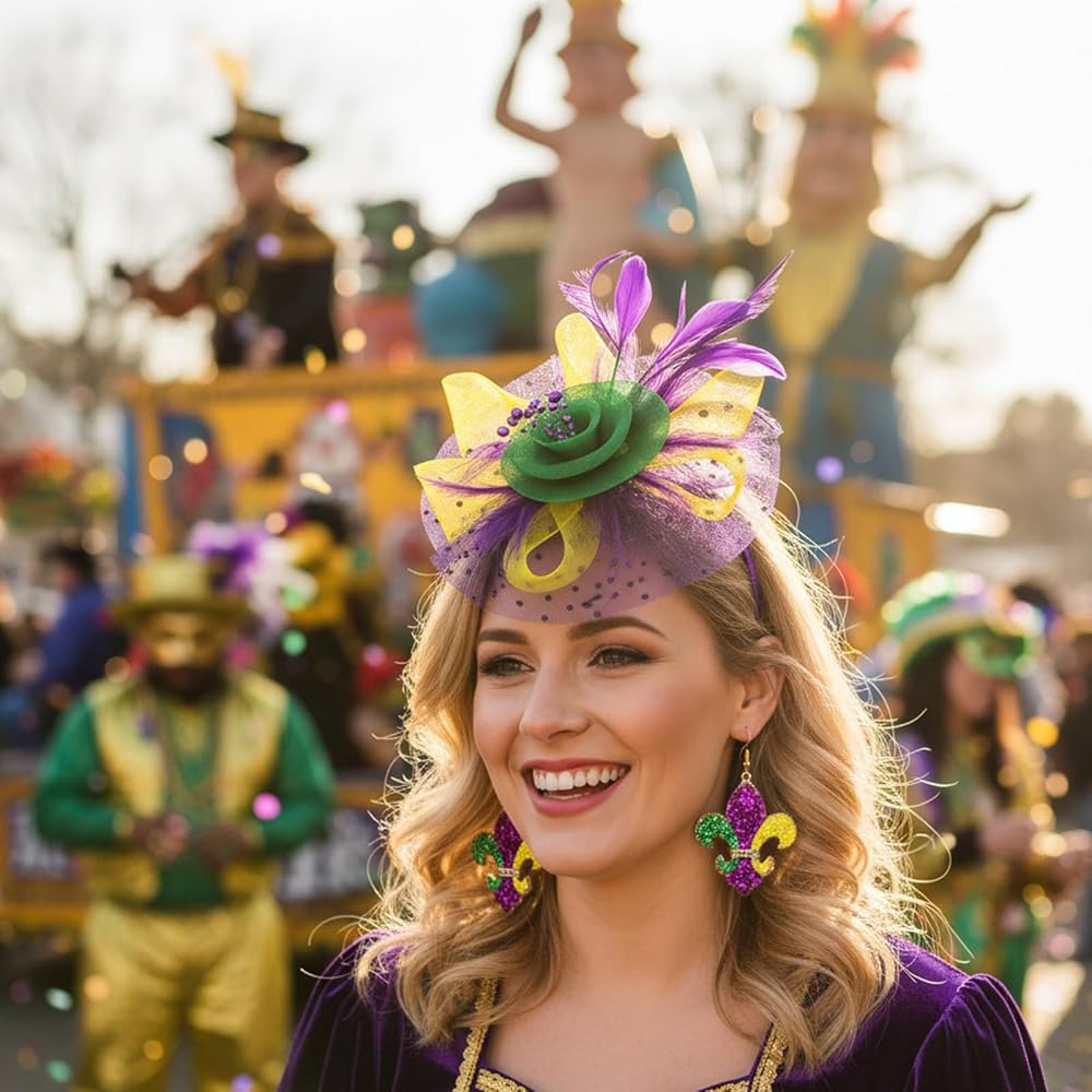 Complete Set: Includes both a Carnival headband and matching earrings for a coordinated look; The lightweight materials ensure comfort during extended wear at events like carnivals or photo shoots