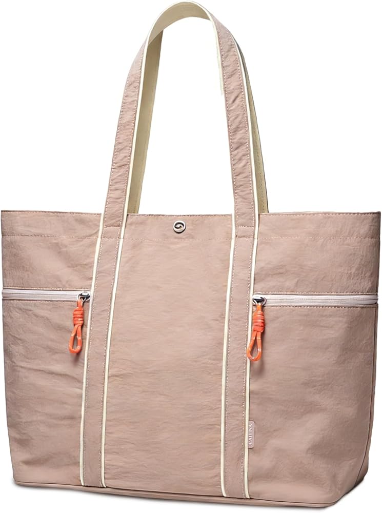 سعة كبيرة: تبلغ أبعاد حقيبة اليد النسائية خفيفة الوزن 19.68 بوصة × 5.9 بوصة × 13.77 بوصة وتزن 1.1 رطل فقط، مما يوفر مساحة واسعة لأجهزة الكمبيوتر المحمولة وسجادات اليوغا والضروريات اليومية. مصممة للاستخدام اليومي، وتتميز بثلاثة جيوب تنظيمية بسحاب وخياطة معززة ونسيج مقاوم للماء لتحمل الارتداء المنتظم في العمل أو صالة الألعاب الرياضية أو السفر.