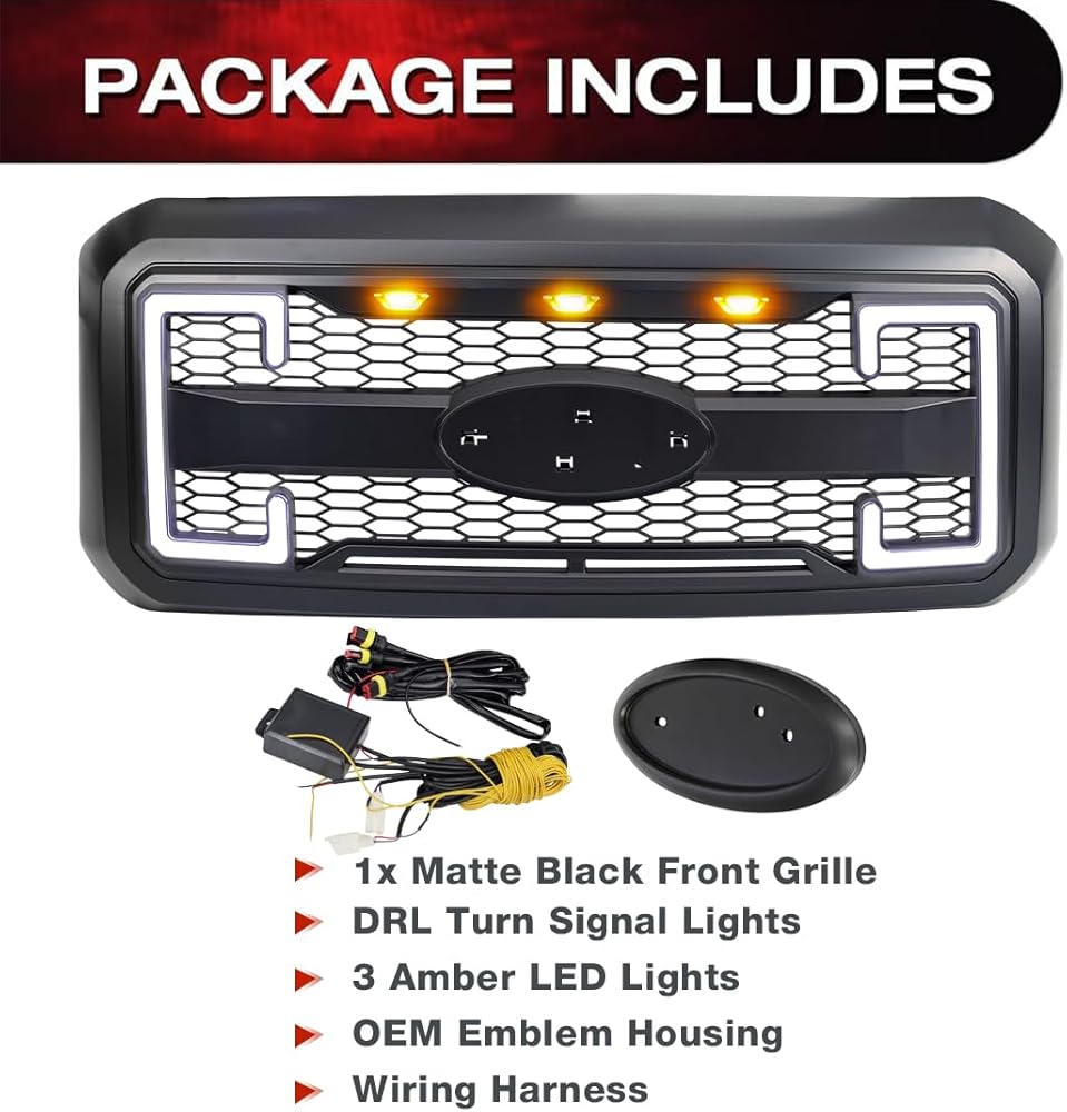 الإعداد: متوافق مع 2011-2016 F-250 F-350 F-450 F-550 سلسلة سوبر ديوتي؛ ملاحظة: تأتي هذه الشبكة بدون أي حروف أو شعارات؛ إعادة استخدام شعار مصبغة المصنع