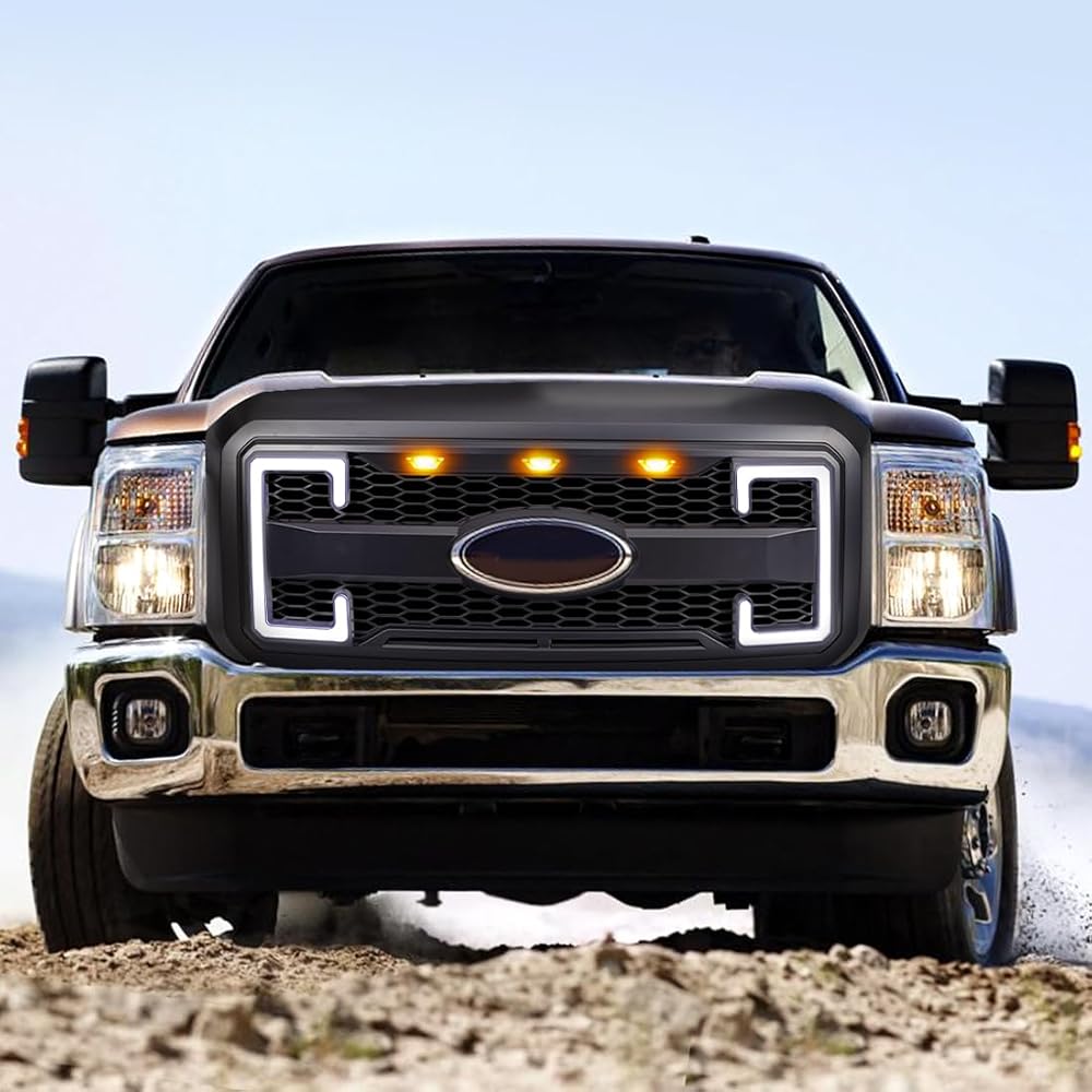 مصابيح الجري أثناء النهار: الشبكة المزودة بـ 3 مصابيح LED كهرمانية وأضواء تشغيل نهارية، تمنح شاحنتك مظهرًا فريدًا وتجعل سيارتك أكثر وضوحًا للسائقين الآخرين في الليل وفي الأحوال الجوية السيئة.