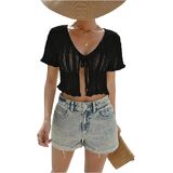 L:Sleeve Length:7.5IN,Bust:34.3IN,Shoulder:15.7IN,Length:15.9IN,Bicep Length:12.0IN