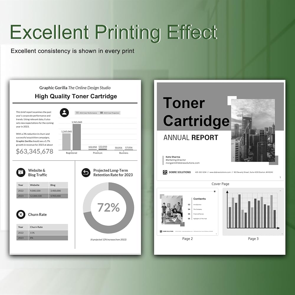 - إنتاجية عالية للصفحة: ما يصل إلى 6500 صفحة لكل خرطوشة حبر سوداء 52D1000، إجمالي 13000 (بتغطية 5%)