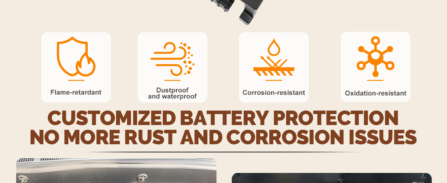 - حماية التغطية الكاملة - يمنع بشكل فعال صدأ البطارية والأكسدة الناجمة عن الرطوبة والغبار والحطام.