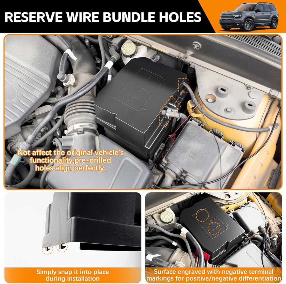 واقي غطاء بطارية محرك ABS لسيارة Ford Bronco Sport 2021-2025، غطاء حماية بطارية محرك مقاوم للغبار بتغطية كاملة لملحقات Bronco الرياضية 2024