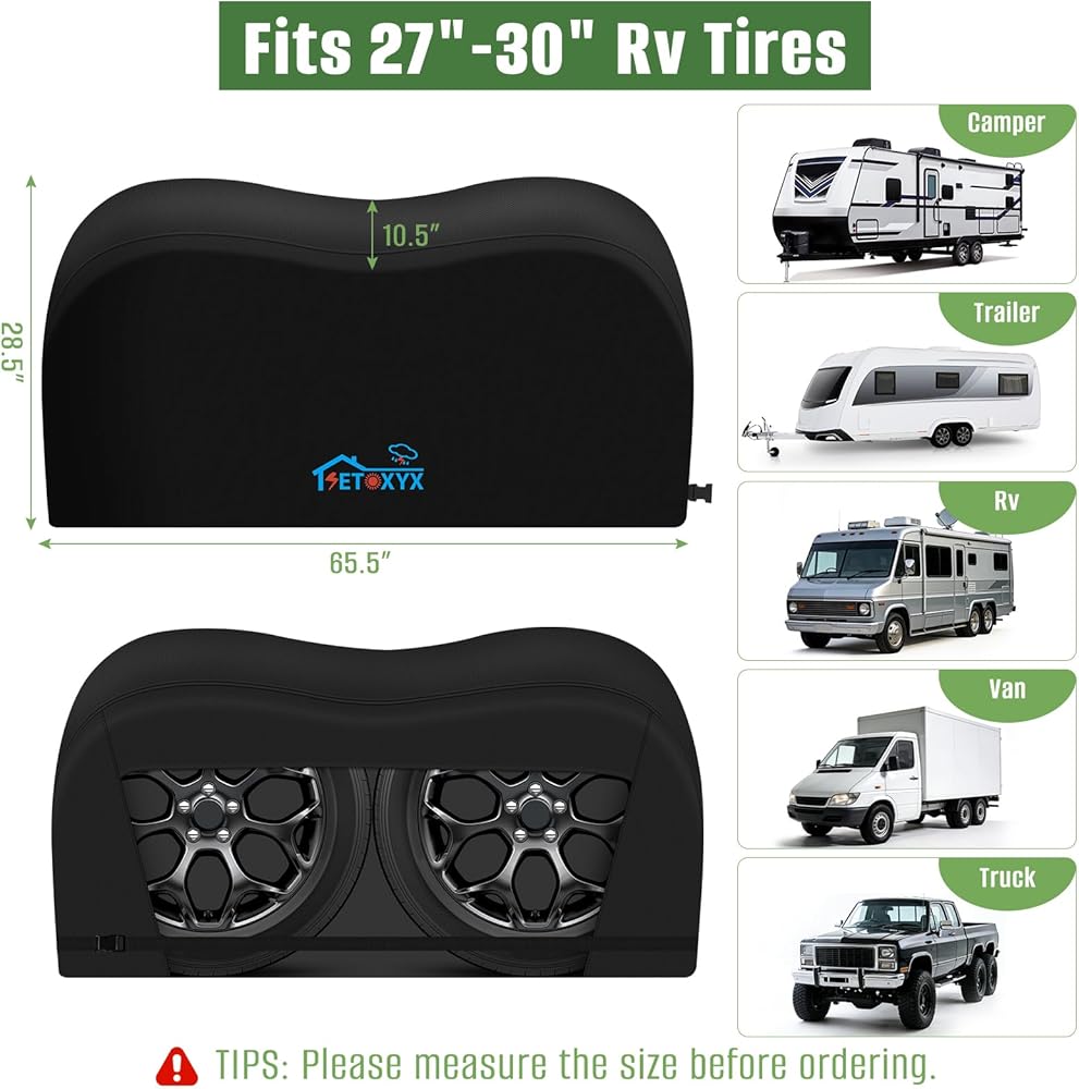 الحجم العالمي: مناسب للمركبات ذات المحور المزدوج، مصمم ليناسب الإطارات التي يبلغ قطرها 27 بوصة - 30 بوصة. متوافق تمامًا مع المركبات الترفيهية والمعسكرات وسيارات الدفع الرباعي والشاحنات والمقطورات وبيوت السيارات. (نصائح: قم بقياس قطر الإطار، وليس حجم الحافة، قبل الشراء).