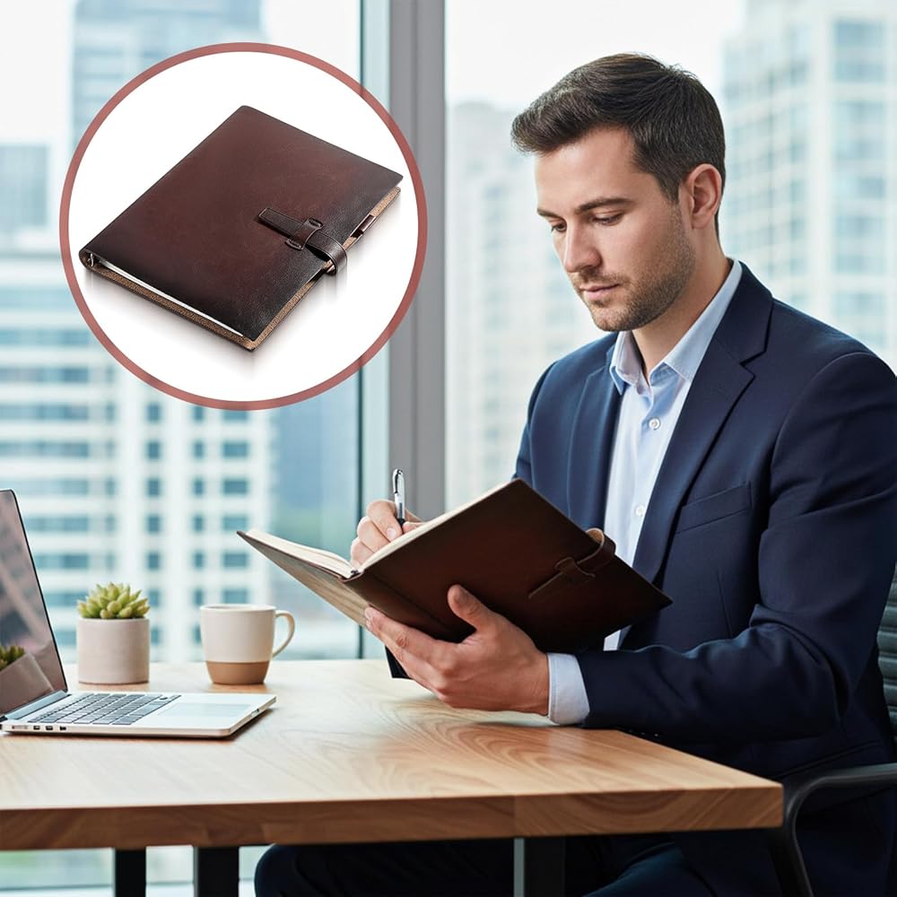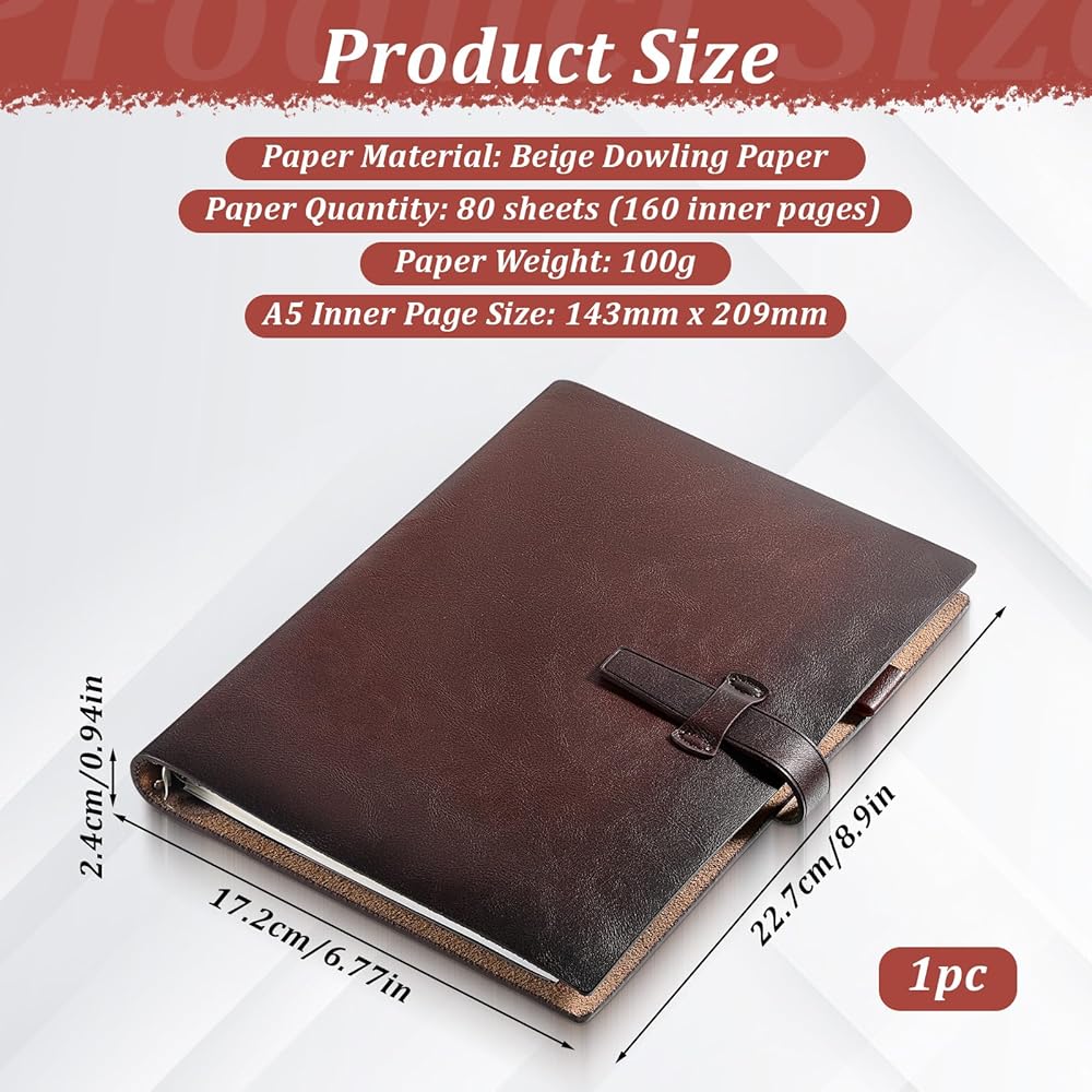 Portable & Versatile for Daily Scenarios: Its compact A5 size slides into backpacks, tote bags, or briefcases—perfect for work meetings, travel journals, notes, or personal diaries. The elegant brownish-red leather and functional design also make it a thoughtful gift for birthdays or festivals, suiting professionals, and journal enthusiasts