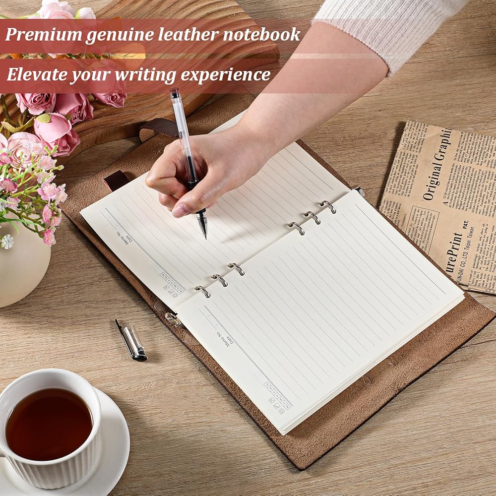 Refillable Design & 160 Pages of High-Quality Lined Paper: Comes with 80 sheets (160 pages) of removable lined A5 paper—smooth, thick, and resistant to ink bleed for clean writing. The 6-ring system lets you easily swap, add, or replace pages (no need to discard the entire notebook), making it an eco-friendly, cost-effective choice for extended use