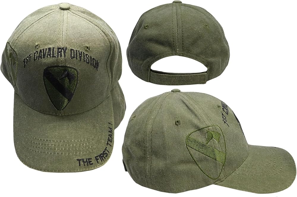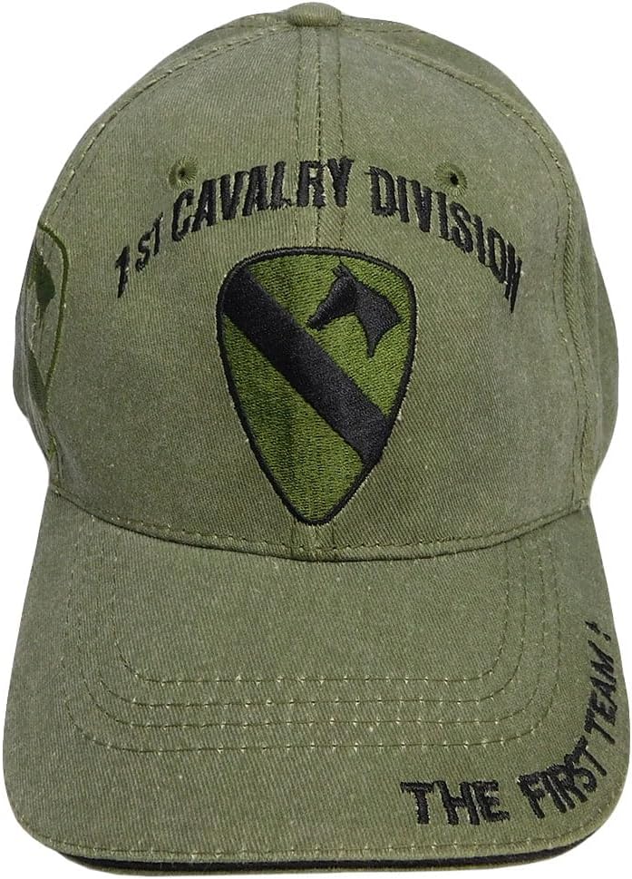 1st Cavalry Division The First Team Olive Drab Green Adjustable Embroidered Cap Hat CAP628G - Licensed
