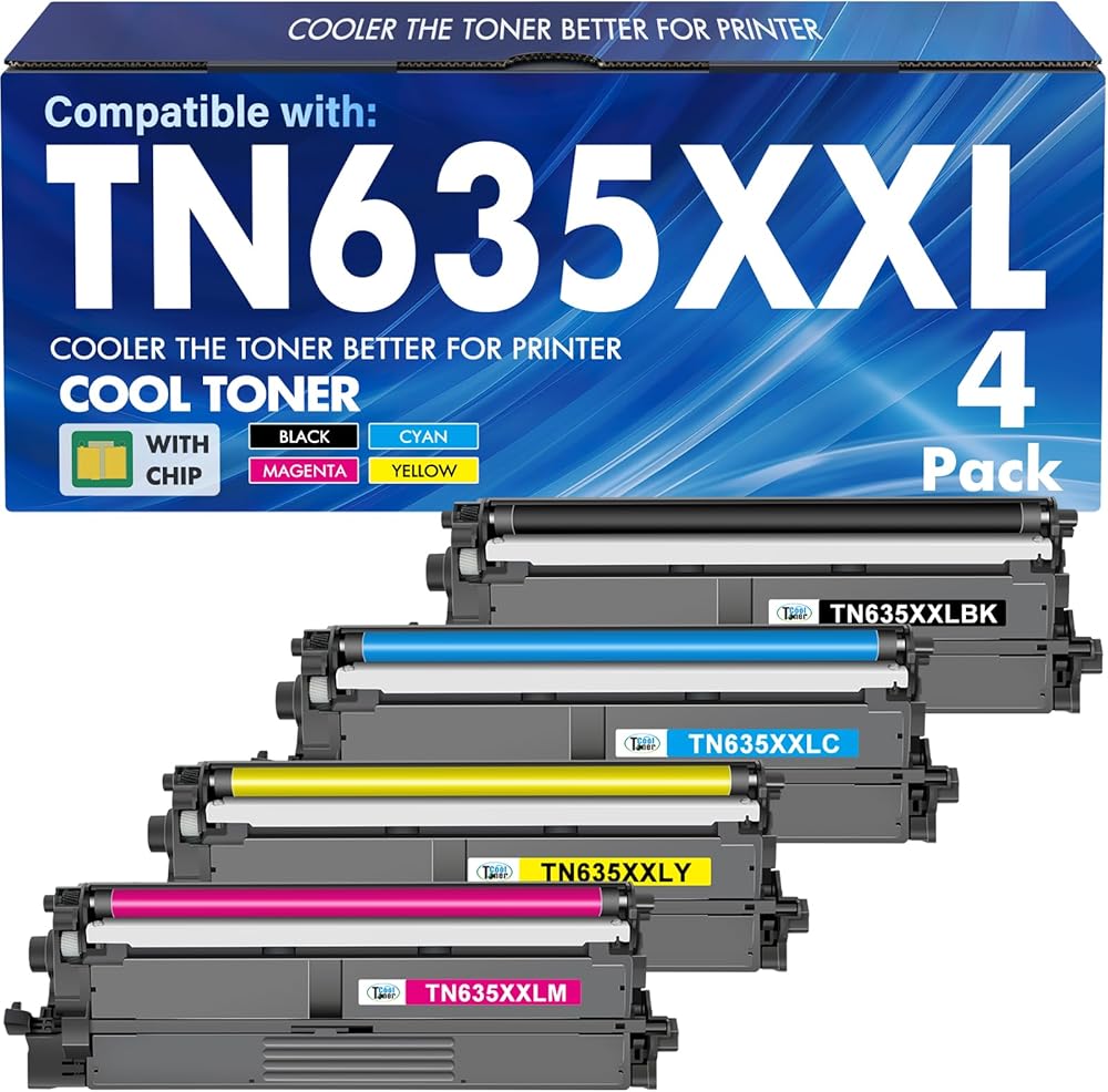 محتويات العلبة: مجموعة خرطوشة حبر Cool Toner TN635XXL ذات 4 ألوان لاستبدال متوافق مع طابعة Brother لخرطوشة حبر Brother TN635XXL TN-635XXL TN635XXLBK TN 635XXL خرطوشة حبر عالية الإنتاجية