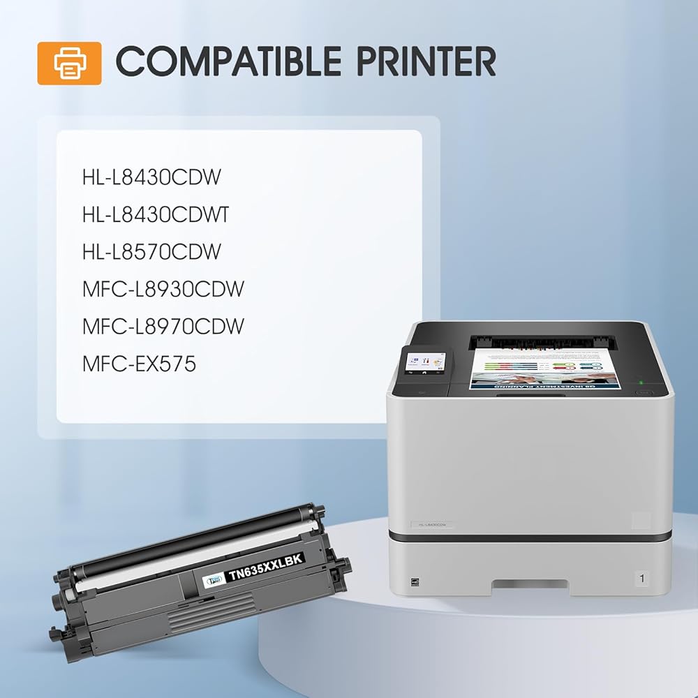 مجموعة خرطوشة الحبر TN635XXL TN-635XXL بديل متوافق لأخيه TN635XXL TN 635XXL TN635XXLBK لطابعة HL-L8430CDW HL-L8430CDWT HL-L8570CDW MFC-L8930CDW MFC-L8970CDW MFC-EX575 4 عبوات