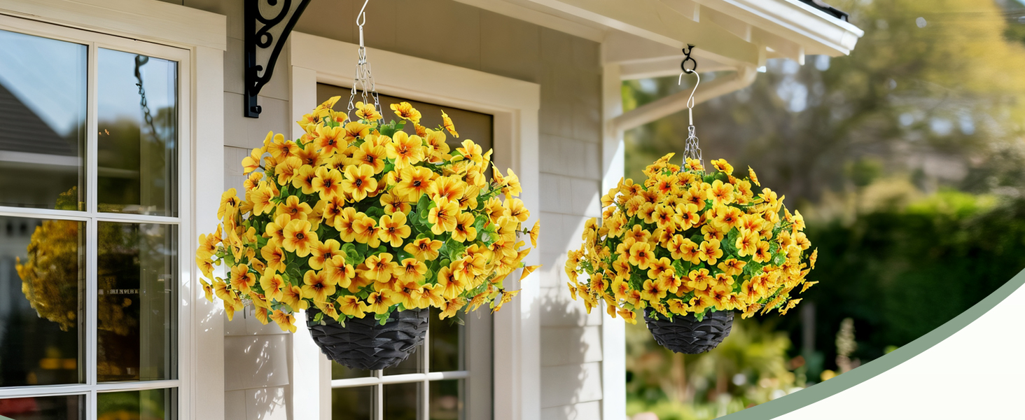【ديكور داخلي وخارجي متعدد الاستخدامات】: تضفي زهور مجد الصباح المزيفة الحقيقية هذه أجواءً ساحرة ومرحبة في الشرفة الأمامية، والممر، والحديقة، والفناء، والشرفة، والباب الأمامي، والأفاريز والمزيد.