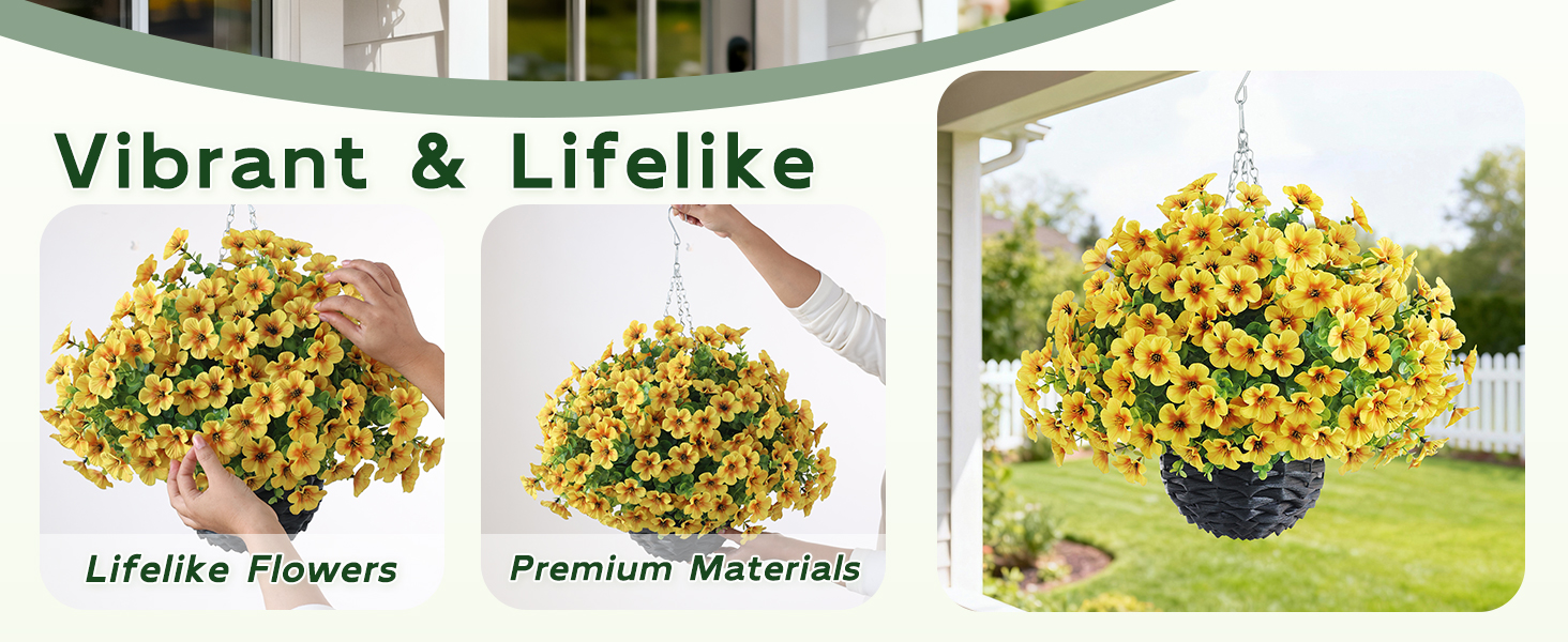 【سلة تعليق جميلة مزيفة لمجد الصباح】: تم تصميم أمجاد الصباح الصناعية لدينا بدقة لتكون واقعية ورائعة للغاية، وتشبه إلى حد كبير الشكل الحقيقي لمجد الصباح، مما يمنحك حيوية الطبيعة.