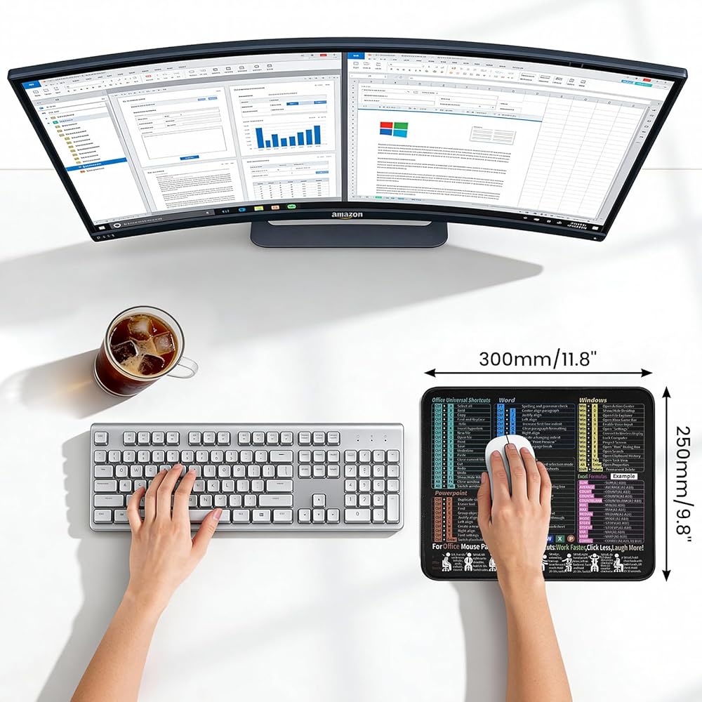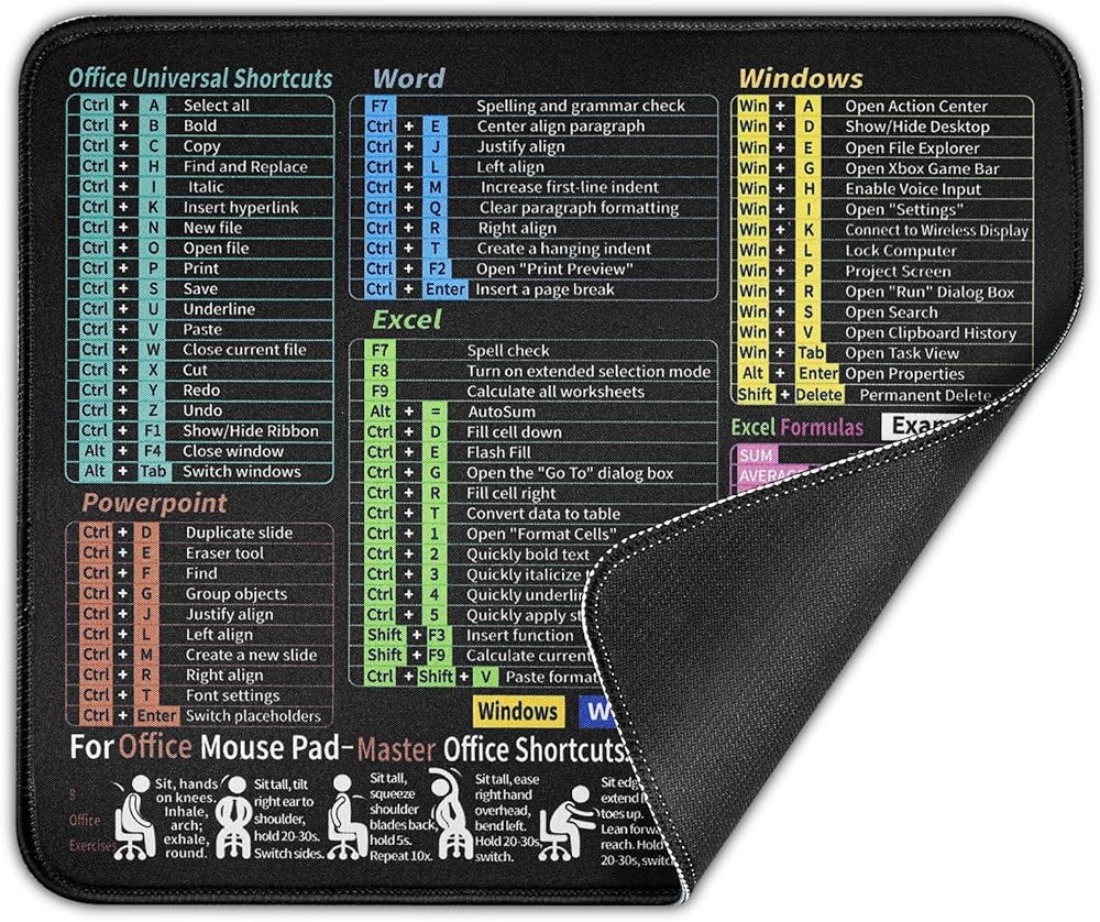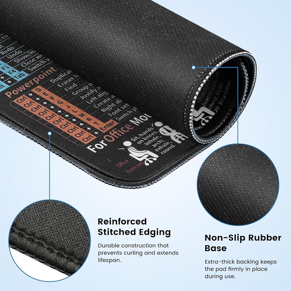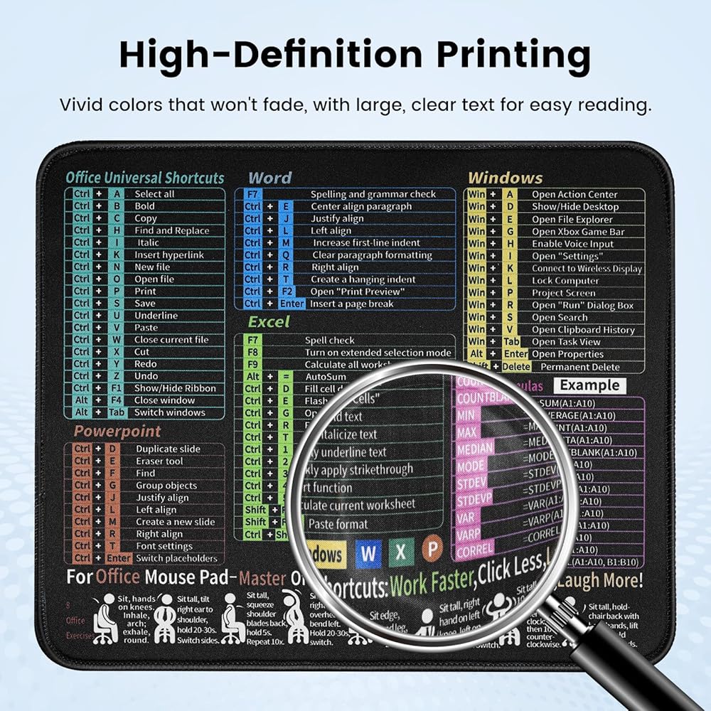 لوحة ماوس Excel مقاس 30 × 25 سم، بساط ماوس غير قابل للانزلاق، بساط ماوس بقاعدة مطاطية، وسادات ماوس مقاومة للماء للكمبيوتر المحمول للمكتب والمنزل