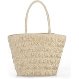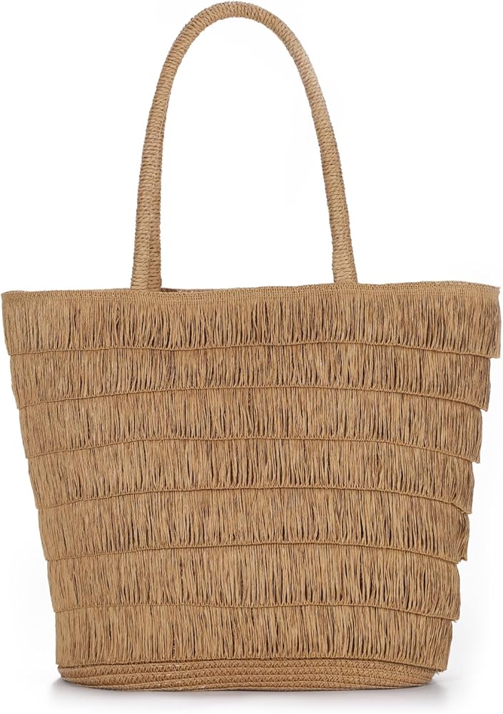 تصميم صيفي بشرابة: مصممة من القش الورقي الطبيعي وتفاصيل شرابة أنيقة، حقيبة الكتف هذه تضفي أجواء صيفية قوية وأجواء العطلات