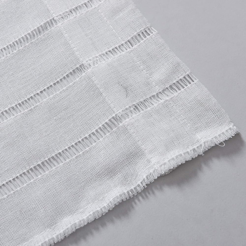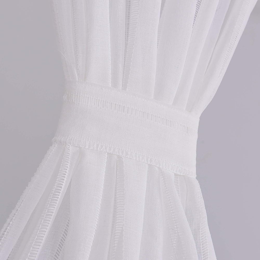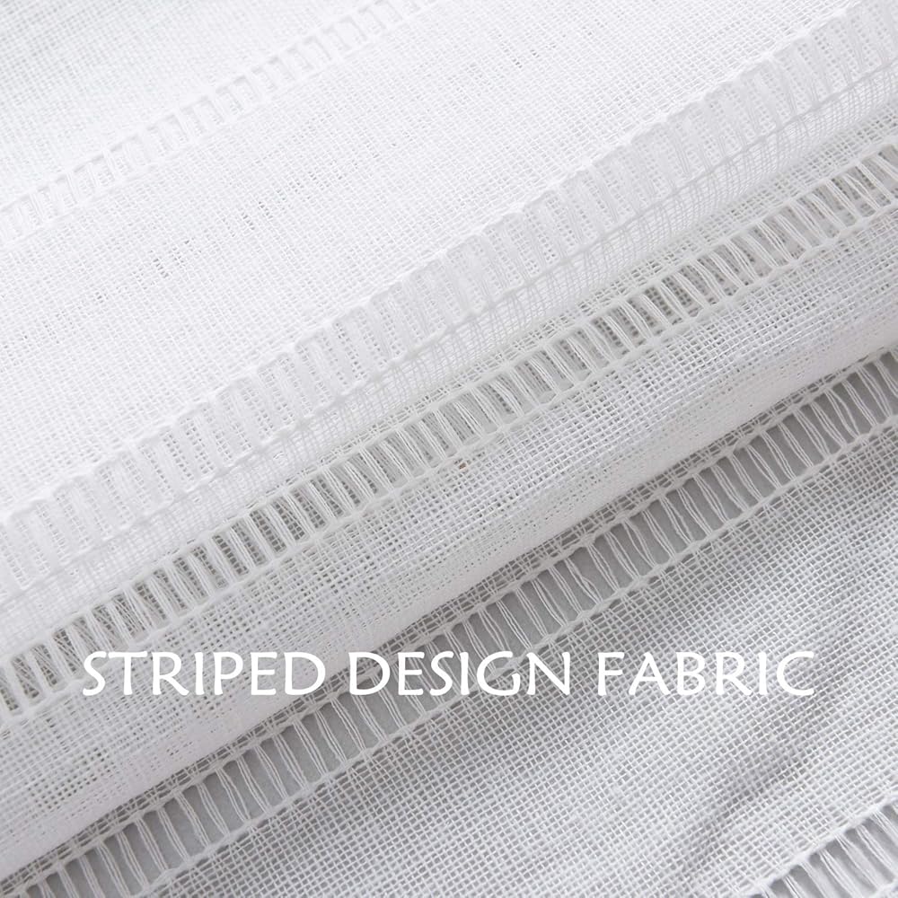 جاهزة الصنع: لوحتان في كل عبوة، يبلغ مقاس كل ستارة باب شفافة مخططة 76.2 سم عرضًا و101.6 سم طولًا. تحتوي جميع الأحجام على فتحة جيب قضيب مقاس 2 بوصة لسهولة التعليق والاستخدام على القضبان المزخرفة. 2 ظهر ربطة عنق متطابقة مجانًا كمكافأة متضمنة.