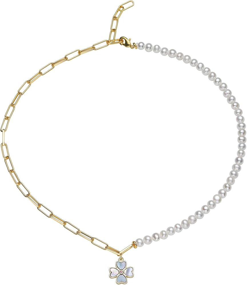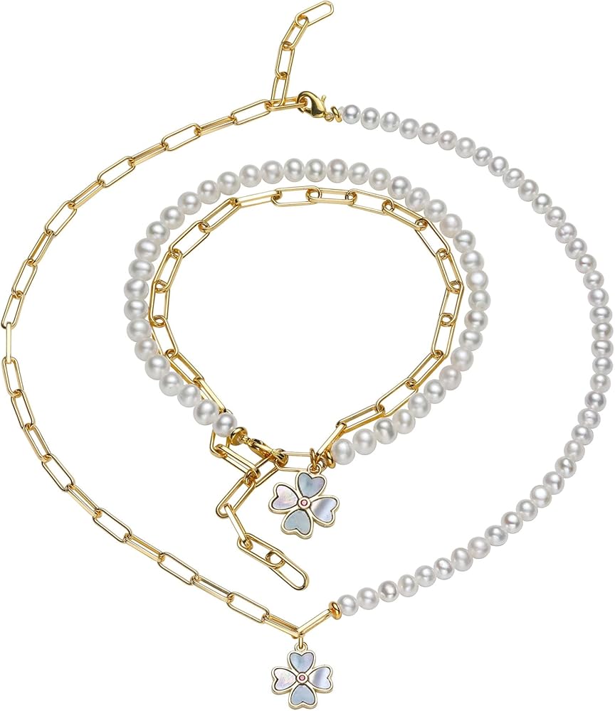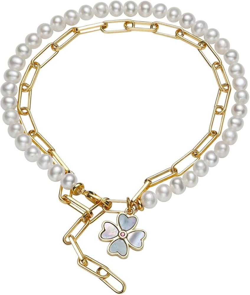 قلادة أو سوار Lucky Clover Leaf 2 في 1 من لؤلؤ المياه العذبة المزروعة (قطعة واحدة)
