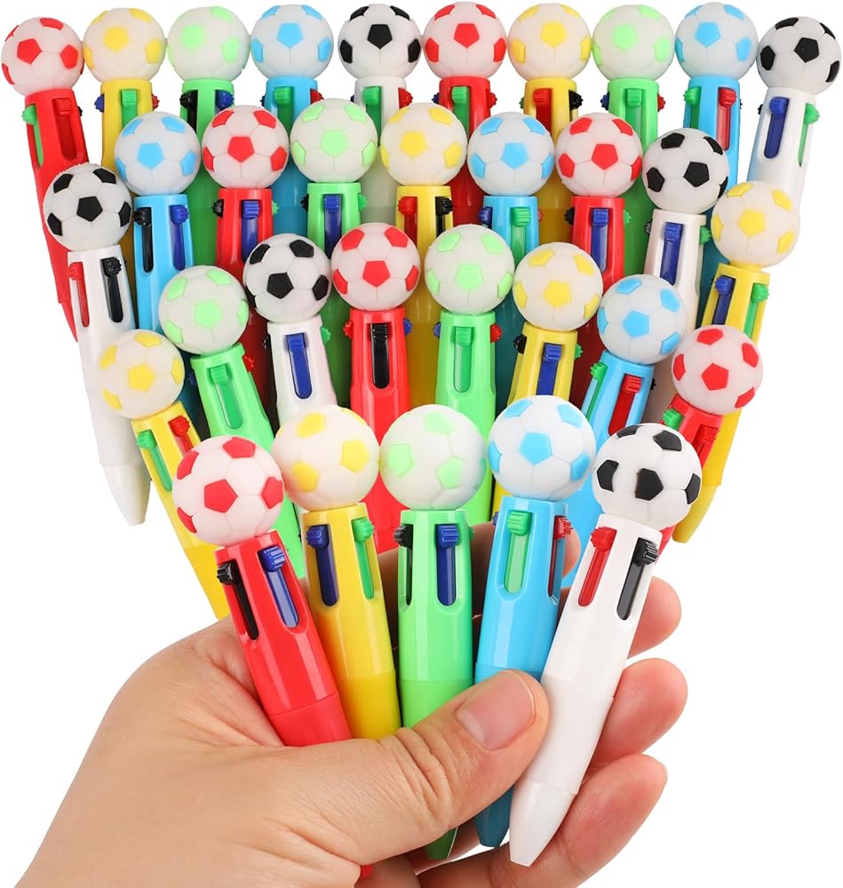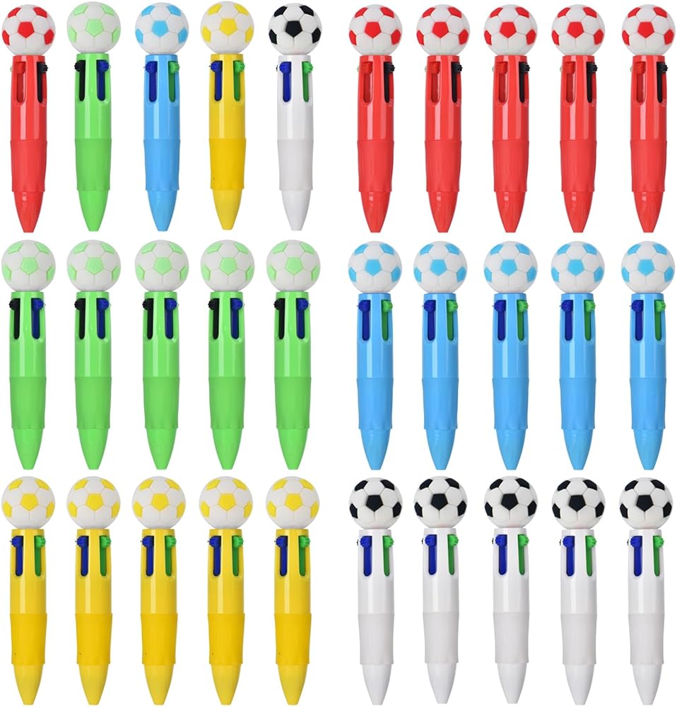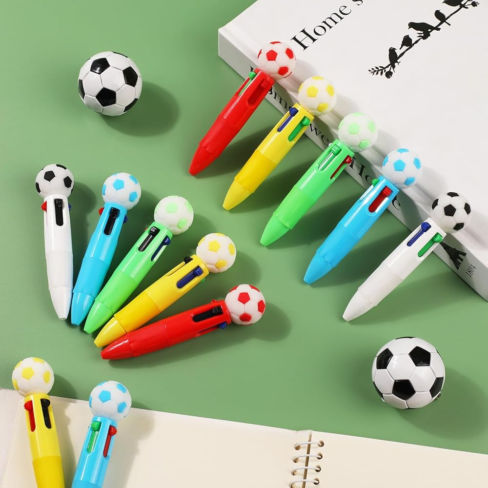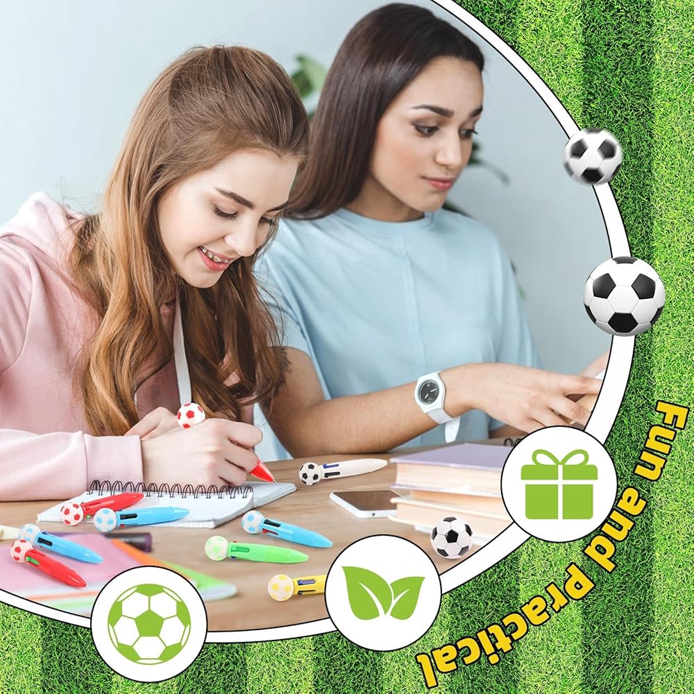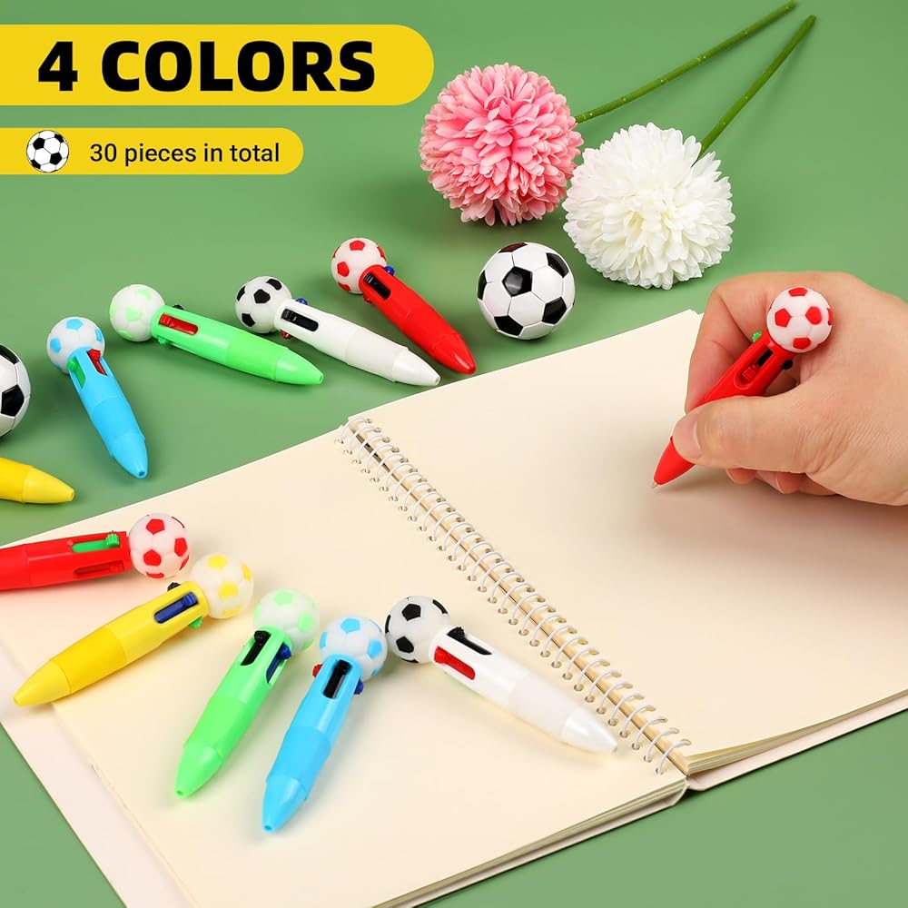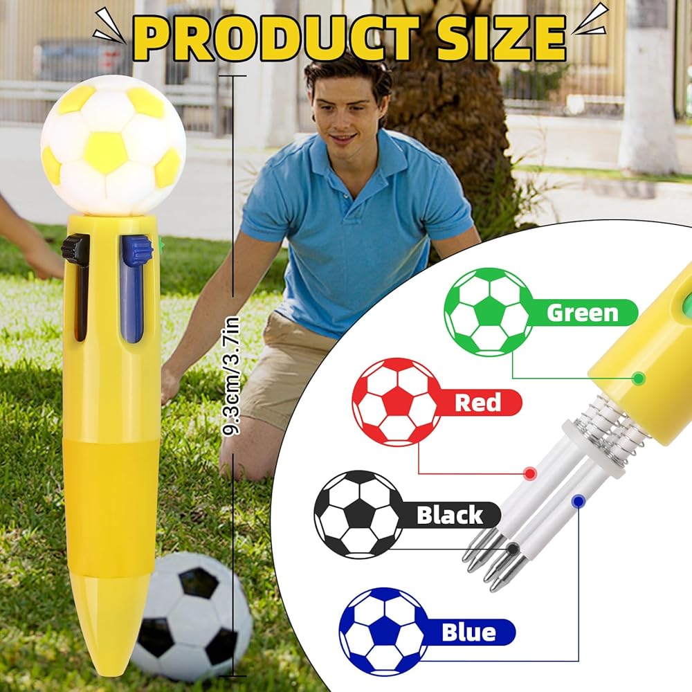 4-in-1 Multicolor Design: Each soccer-themed pen features 4 different ink colors(black, blue, red, green) in one convenient writing instrument, eliminating the need to switch between multiple pens for note-taking, color-coding, or creative drawing