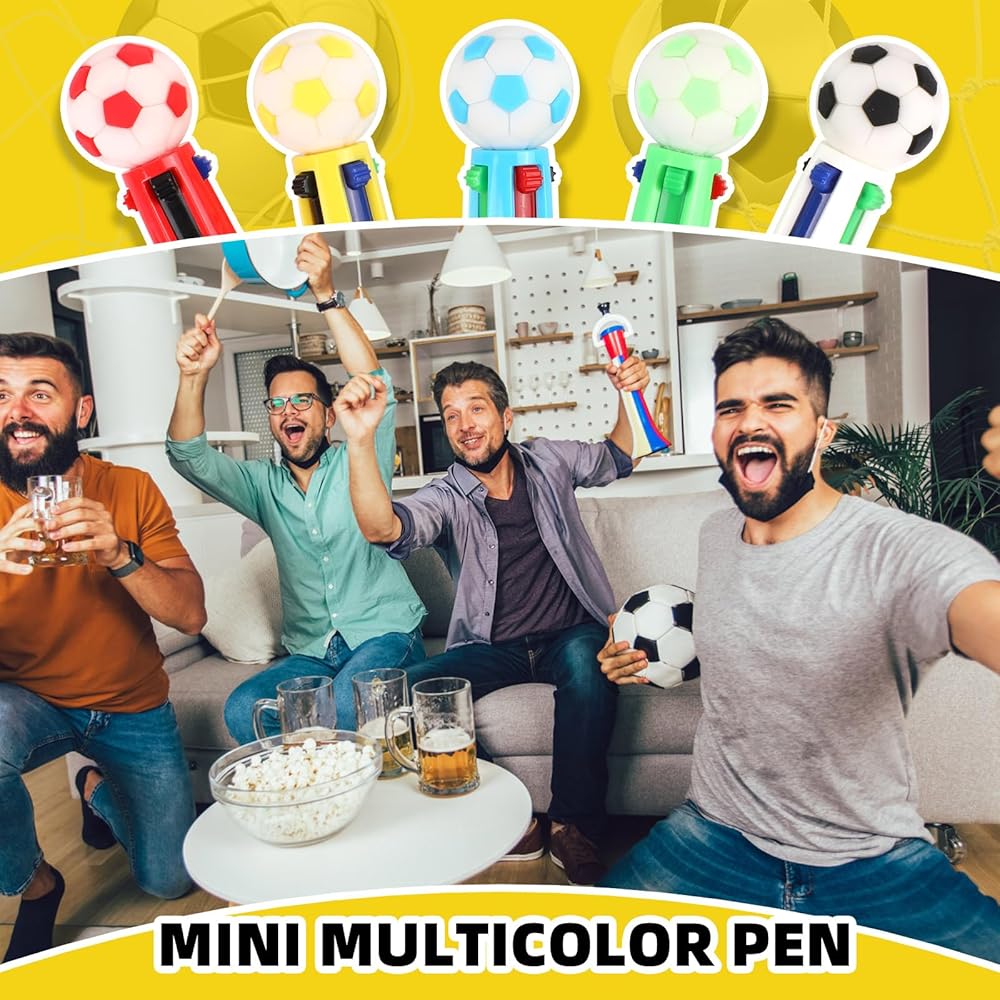 These soccer ballpoint pens combine functionality with sports-themed fun, making them perfect for soccer enthusiasts, and anyone who appreciates convenient writing tools. This set includes 30 pens total, with 6 pens in each of the 5 vibrant tube colors: red, yellow, green, blue, and white. The generous quantity makes them ideal for sharing with friends, or teammates. Each pen features an innovative 4-in-1 multicolor design that eliminates the need to switch between multiple pens while taking notes, color-coding assignments, or creating colorful drawings. The 0.5mm fine point delivers smooth, precise lines that won't smudge or bleed through paper, ensuring your work stays clean and professional-looking. These pens are excellent choices for sports events, team celebrations, or thoughtful gifts for soccer fans.