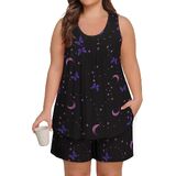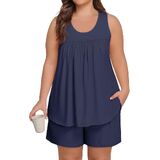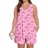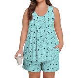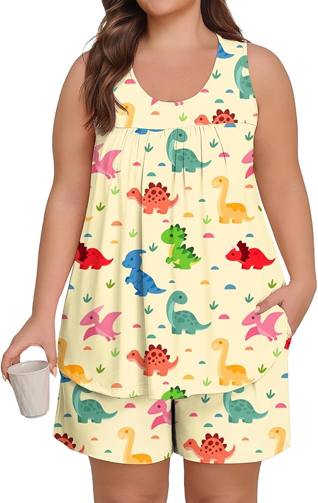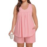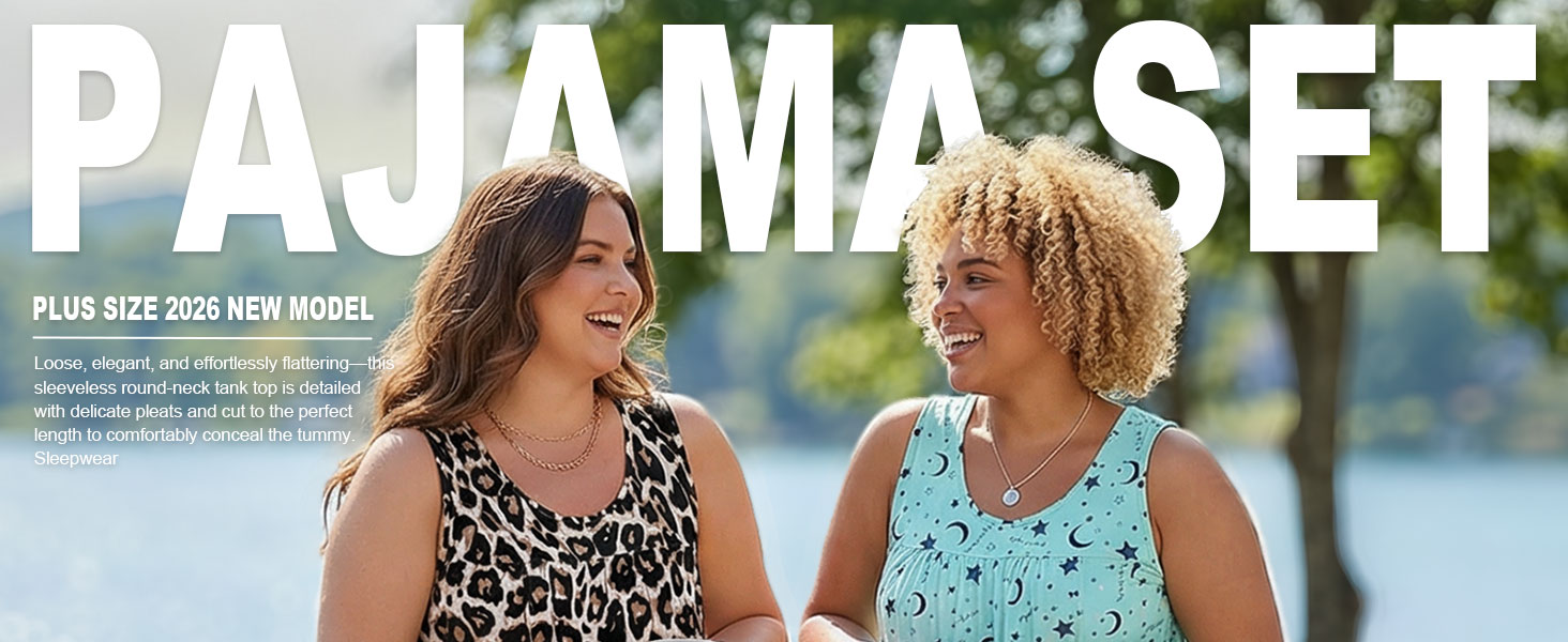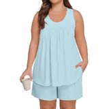 【تصميم رائع】: بيجامات نسائية ناعمة بمقاس كبير مع قمصان بدون أكمام وسراويل قصيرة متطابقة مع جيوب، مناسبة لجميع المواسم. يتميز الجزء العلوي ذو الرقبة الواسعة بتصميم أمامي مطوي يوفر مقاسًا جذابًا يخفي البطن، بينما يوفر الشورت حزام خصر مرن مع رباط قابل للتعديل لملاءمة مريحة وقابلة للتخصيص. استمتع براحة مستمرة طوال الليل