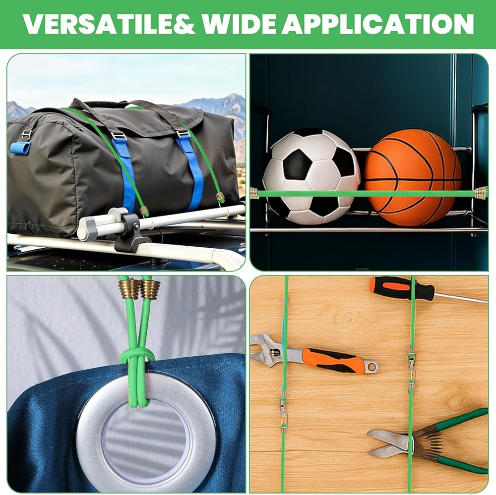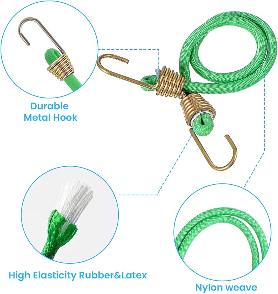 Reliable Rubber Bungee Cords: These bungee cords heavy duty outdoor are crafted with UV-resistant materials, ensuring long-lasting performance even in harsh conditions. Designed to withstand the elements, rubber bungee cords with hooks provide a reliable solution for securing items in any environment. Whether you're organizing your garage, securing camping gear, or need a dependable solution for everyday tasks, the elastic cord is up to the challenge.