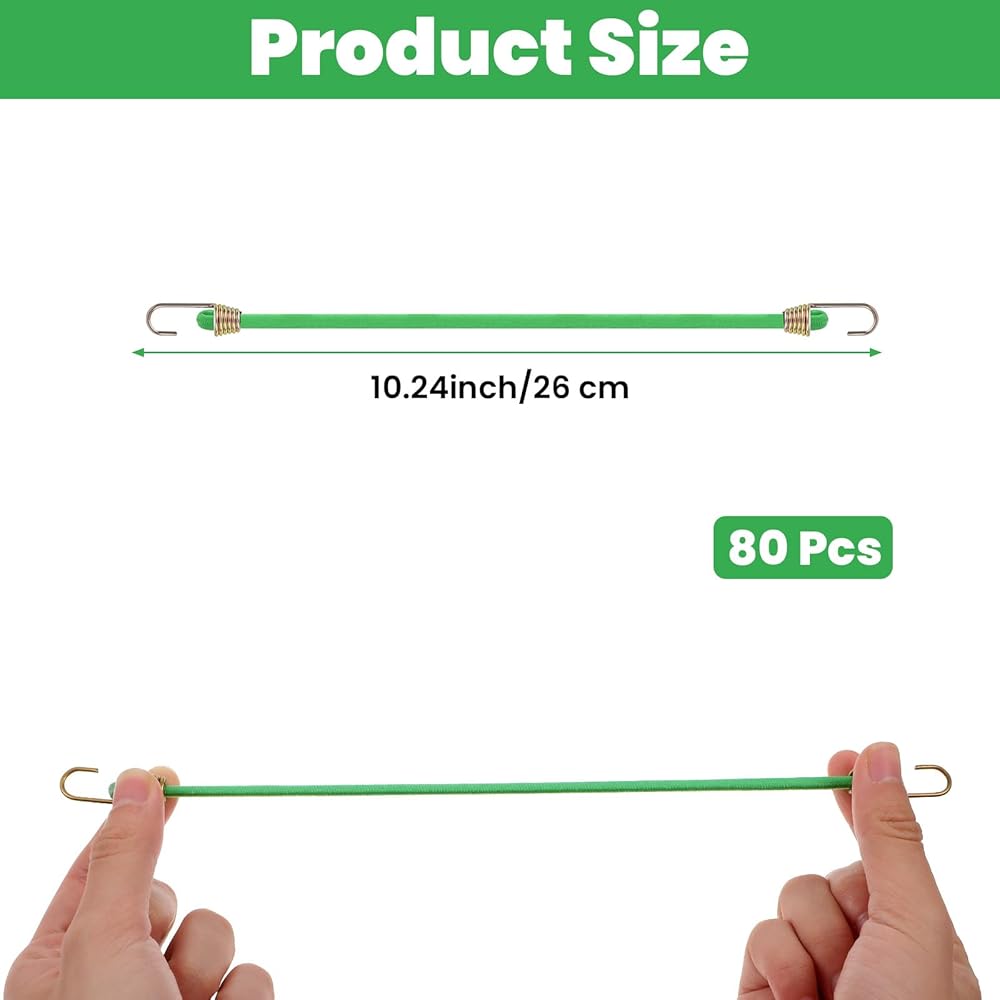 Durable Bungee Straps: Crafted from high-quality rubber, these mini bungee cords are engineered to provide exceptional elasticity and resilience. Ideal for outdoor use, bungee cords maintain their shape and hold under pressure, ensuring your items remain secure. Whether you're securing camping gear, organizing your garage, or need a reliable solution for everyday tasks, these short bungee cords with hooks are up to the challenge.