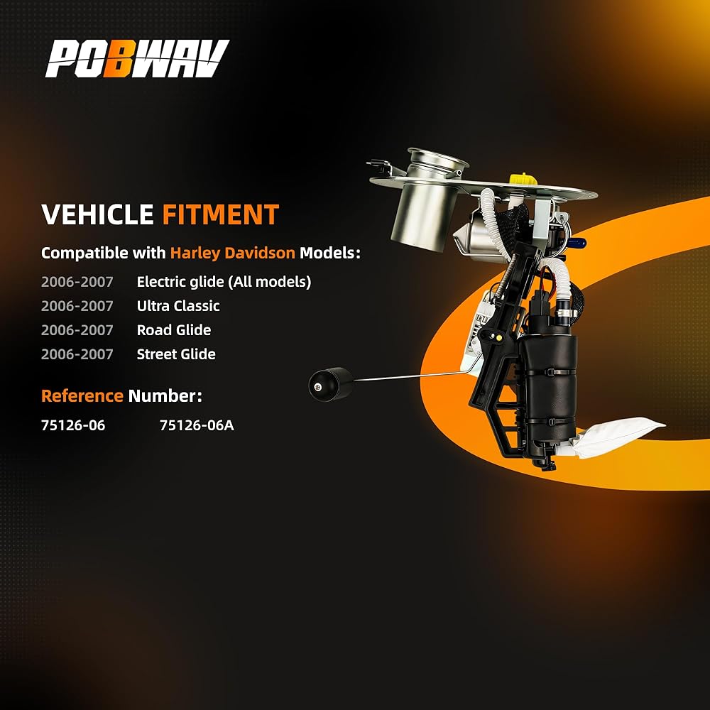 【متوافق مع موديلات الرحلات 2006-2007】: مجموعة وحدة مضخة الوقود POBWAV 75126-06A المتوافقة مع موديلات 2006 -2007 الكهربائية المنزلقة (جميع الموديلات) (FLHT/FLHTC/FLHTCU)، الترا كلاسيك، رود جلايد (FLTR)، ستريت جلايد (FLHX). قد يختلف الإعداد حسب القطع أو التكوين.