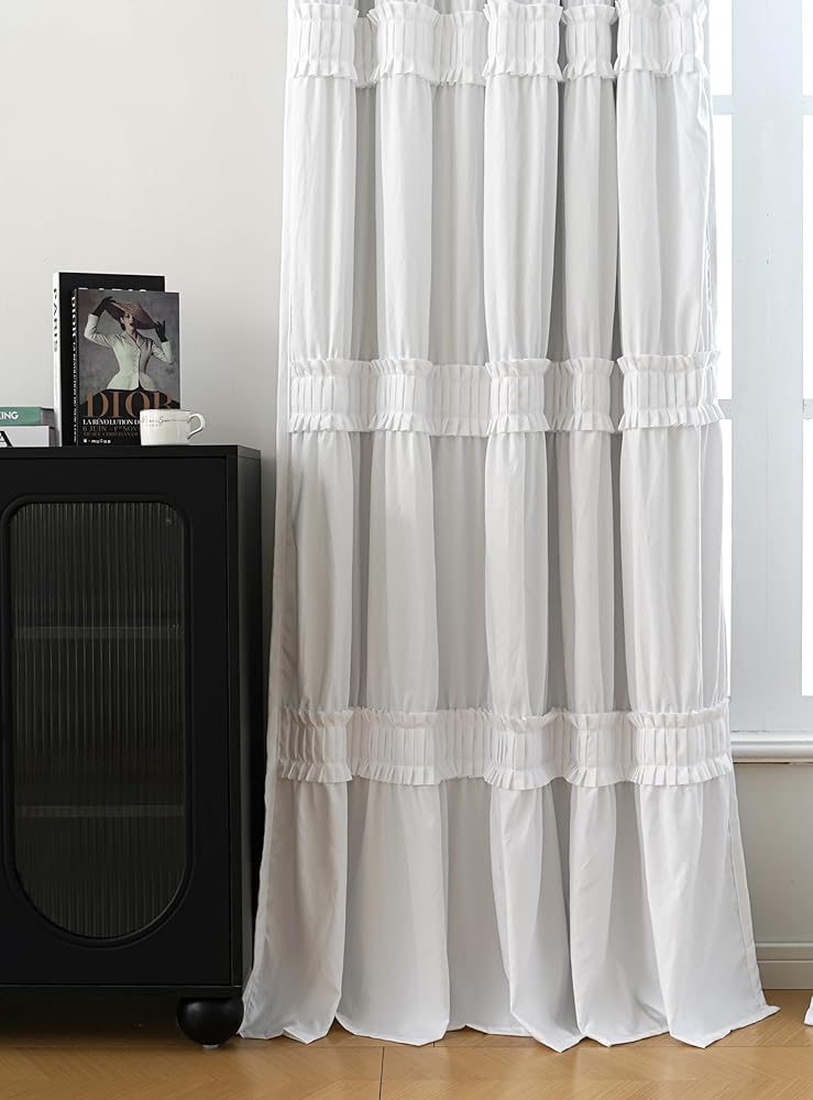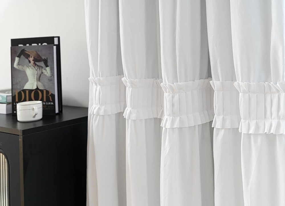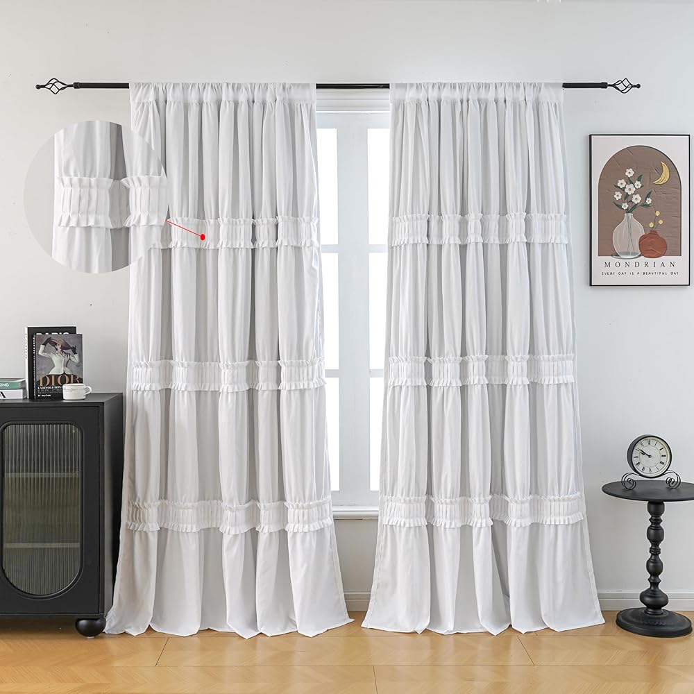 Exquisite Craft Make Your Room Different: Along with the unique ruching, there are 3 rows of handcrafted Ruffle details creating a sweet and classy vision for your room. Combined the elegance of ruffles and luxury of bow tie, these light blocking curtains give a finishing touch of class and sophistication to instantly brighten your space.