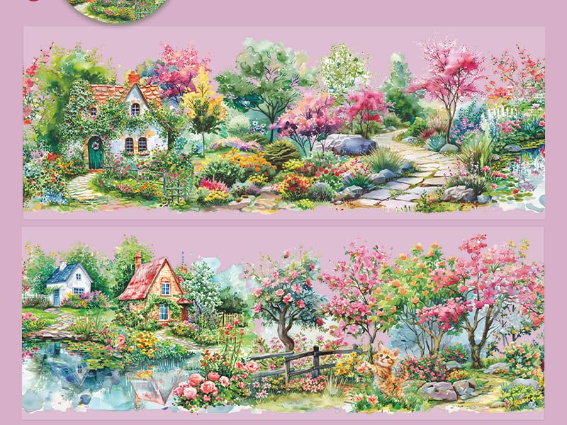 التصميم: ملصقات الشريط ذات طابع الحديقة والكوخ تصنع مشهدًا من الزهور الهادئة والأعشاب الهامسة، مثالية لخلق جو مهدئ ومجدد.